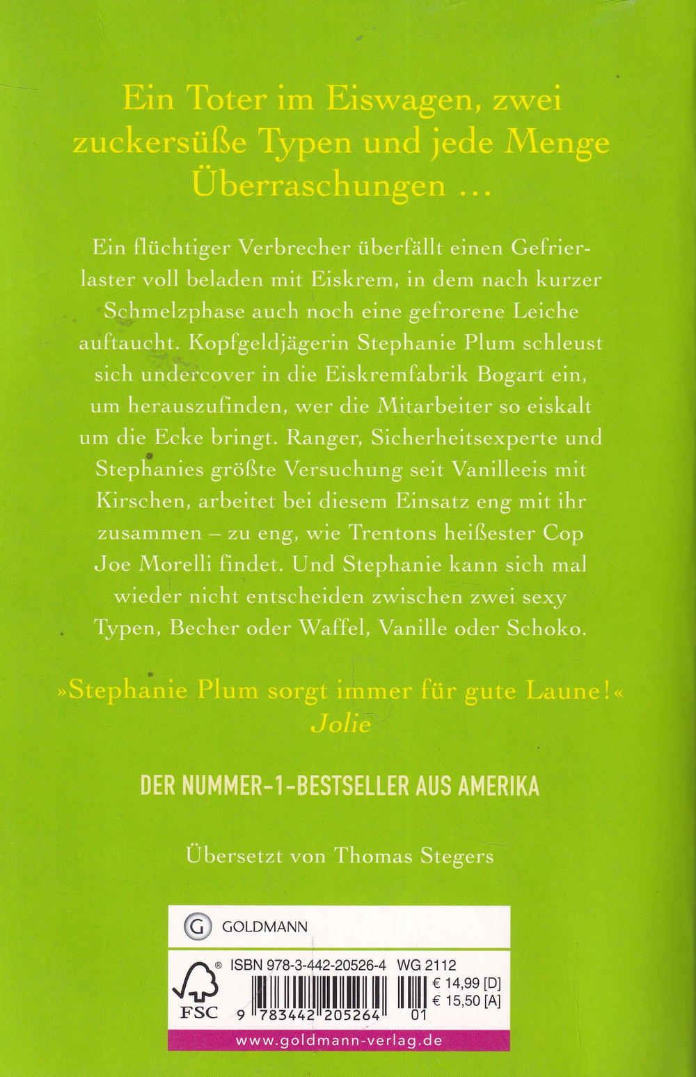 Ein flüchtiger Verbrecher überfällt einen Gefrierlaster voll beladen mit Eiskrem - in dem nach kurzer Schmelzphase auch noch eine gefrorene Leiche auftaucht. Kopfgeldjägerin Stephanie Plum schleust sich undercover in die Eiskremfabrik Bogart ein, um herauszufinden, wer die Mitarbeiter so eiskalt um die Ecke bringt. Ranger, Sicherheitsexperte und Stephanies grösste Versuchung seit Vanilleeis mit Kirschen, arbeitet bei diesem Einsatz eng mit ihr zusammen - zu eng, wie Trentons heissester Cop Joe Morelli findet. Und Stephanie kann sich mal wieder nicht entscheiden zwischen zwei sexy Typen, Becher oder Waffel, Vanille oder Schoko. So süss war das Plum'sche Chaos noch nie!