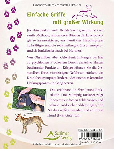 Einfache Griffe mit grosser Wirkung - Jin Shin Jyutsu, auch Heilströmen genannt, ist eine sanfte Methode, mit unseren Händen die Lebensenergie zu harmonisieren, um damit das Immunsystem zu kräftigen und die Selbstheilungskräfte anzuregen – und sie funktioniert auch bei Hunden! Von Ohrmilben über Gelenkentzündungen bis hin zu psychischen Problemen: Durch einfaches Halten bestimmter Punkte am Körper können Sie die Gesundheit Ihres vierbeinigen Gefährten stärken, ein Krankheitssymptom lindern oder einen umfassenden Heilungsprozess in Gang setzen. Die erfahrene Jin-Shin-Jyutsu-Praktikerin Tina Stümpfig-Rüdisser zeigt Ihnen mit einfachen Erklärungen und anhand zahlreicher Abbildungen, wie Sie die Griffe anwenden und so Ihrem Hund etwas Gutes tun.