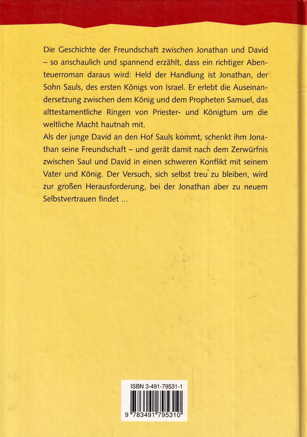 Die Geschichte der Freundschaft zwischen Jonathan und David so anschaulich und spannend erzählt, dass ein richtiger Abenteuerroman daraus wird: Held der Handlung ist Jonathan, der Sohn Sauls, des ersten Königs von Israel. Er erlebt die Auseinandersetzung zwischen dem König und dem Propheten Samuel, das alttestamentliche Ringen von Priester- und Königtum um die weltliche Macht hautnah mit.