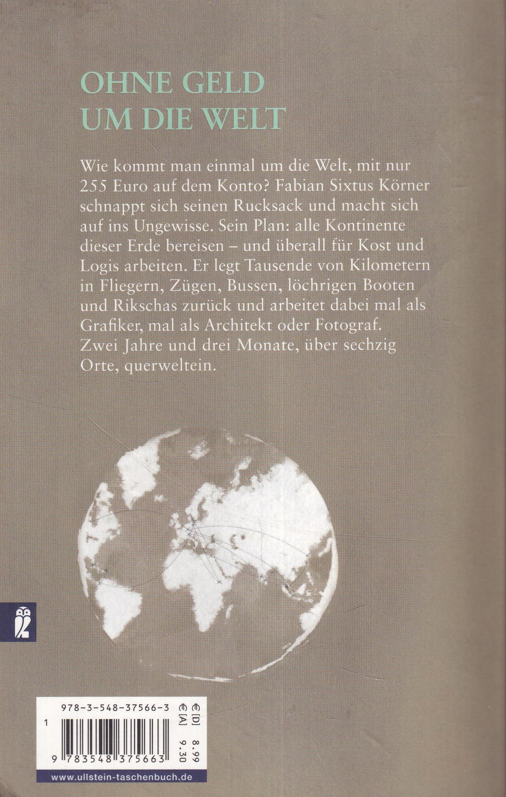 Wie kommt man einmal um die Welt, mit nur 255 Euro auf dem Konto? Fabian Sixtus Körner schnappt sich seinen Rucksack und macht sich auf ins Ungewisse. Sein Plan: alle Kontinente dieser Erde bereisen - und überall für Kost und Logis arbeiten. Er legt Tausende von Kilometern in Fliegern, Zügen, Bussen, löchrigen Booten und Rikschas zurück und arbeitet dabei mal als Grafiker, mal als Architekt oder Fotograf. Zwei Jahre und zwei Monate, über 60 Orte, querweltein.