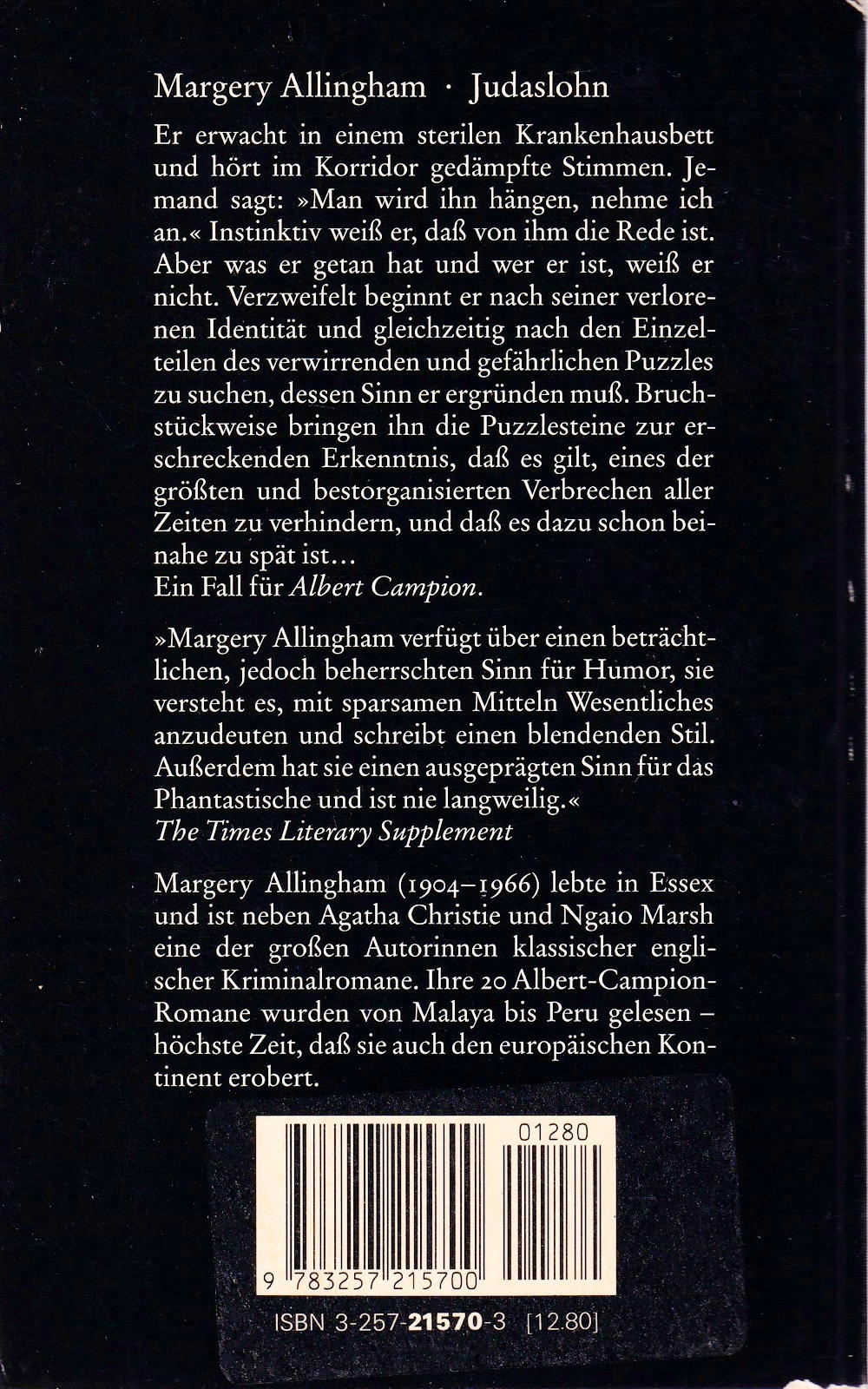 Margery Allingham (1904-1966) lebte in Essex und ist neben Agatha Christie und Ngaio Marsh eine der grossen Autorinnen klassischer englischer Kriminalromane. Ihre 20 Albert-Campion-Romane wurden von Malaya bis Peru gelesen - höchste Zeit, dass sie auch den europäischen Kontinent erobert.