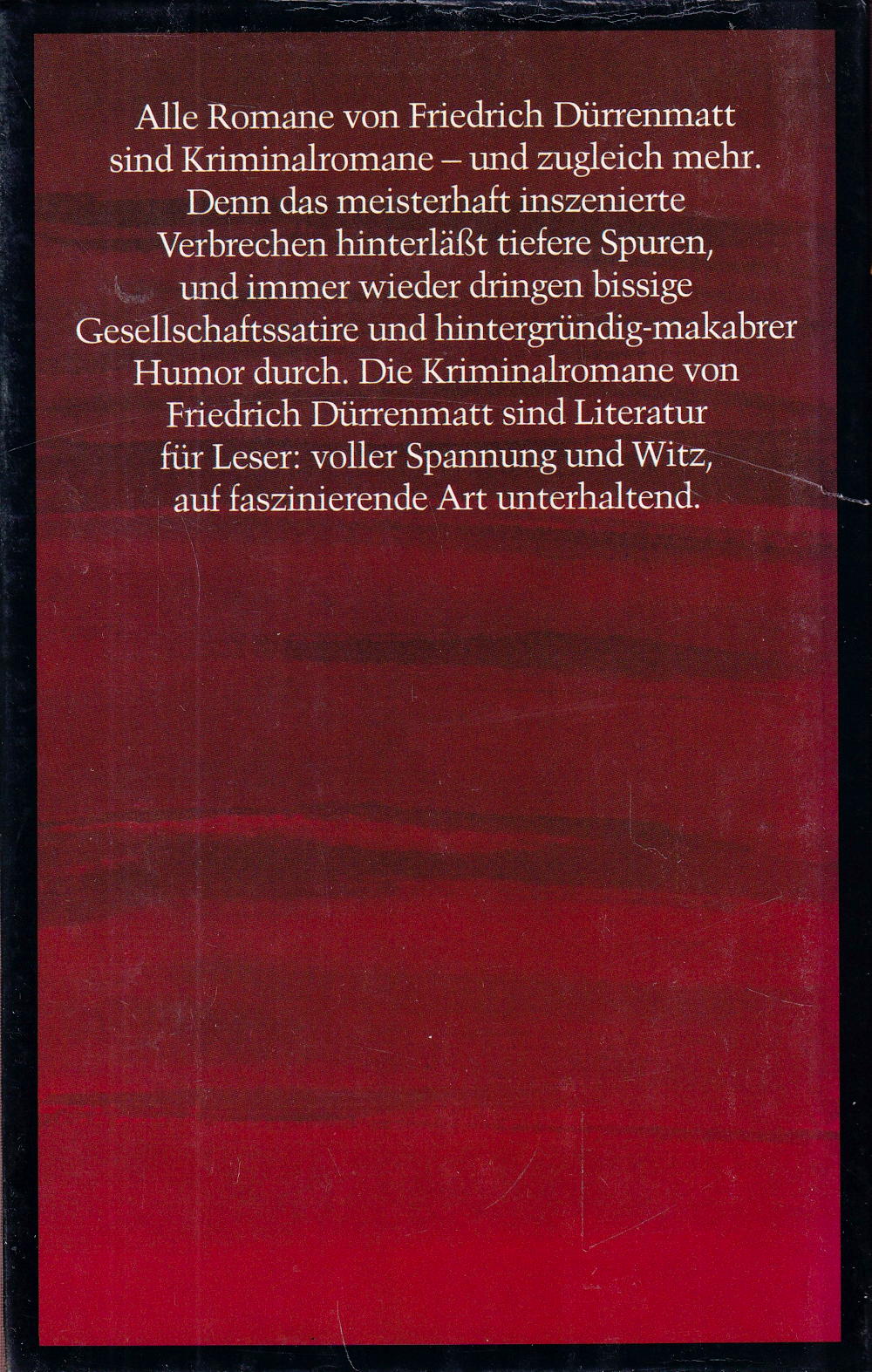 Denn das meisterhaft inszenierte Verbrechen hinterlässt tiefere Spuren, und immer wieder dringen bissige Gesellschaftssatire und hintergründig-makabrer Humor durch. Die Kriminalromane von -Friedrich Dürrenmatt sind Literatur für Leser: voller Spannung und Witz, auf faszinierende Art unterhaltend.
