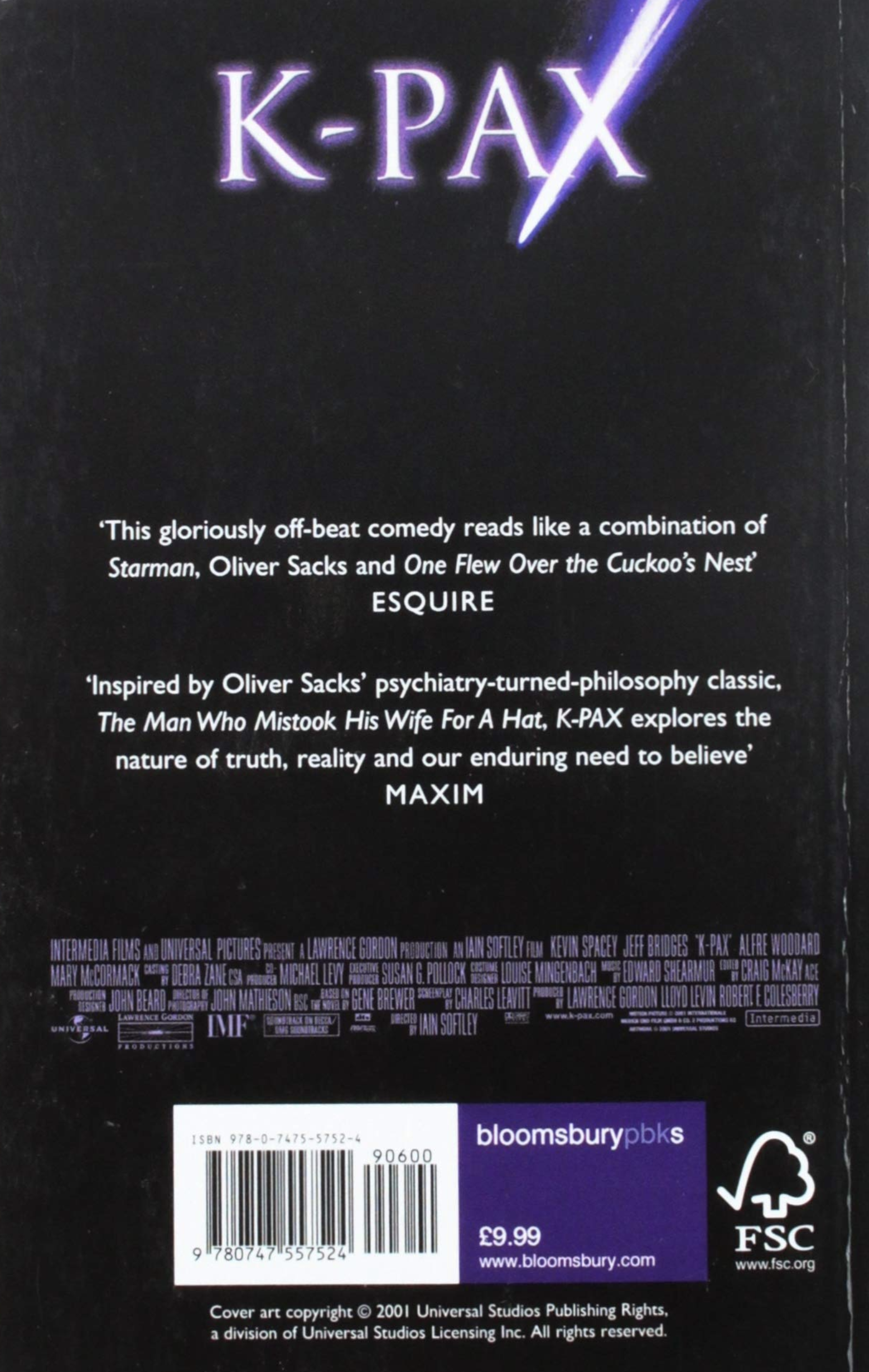 When a man who claims to be from outer space is brought into the Manhattan Institute, the mental ward seems to be just the place for him. However this patient is unlike anyone psychiatrist Dr. Gene Brewer has had under his care before. Calling himself 'prot', he has no traceable background but says that he is an inhabitant of the planet K-PAX, a perfect world without wars, government or religion, and where every being coexists in harmony. Setting a departure date - August 17th at 3.31am - on which he plans to return home on a beam of light, 'prot' keeps us guessing right up until the end.