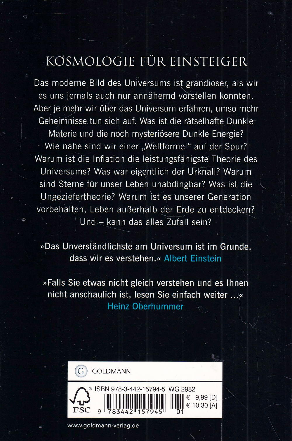 Das moderne Bild des Universums ist grandioser, als wir es uns jemals auch nur annähernd vorstellen konnten. Aber je mehr wir über das Universum erfahren, umso mehr Geheimnisse tun sich auf. Was ist die rätselhafte Dunkle Materie und die noch mysteriösere Dunkle Energie? Wie nahe sind wir einer „Weltformel“ auf der Spur? Warum ist die Inflation die leistungsfähigste Theorie des Universums? Was war eigentlich der Urknall? Warum sind Sterne für unser Leben unabdingbar? Was ist die Ungeziefertheorie? Warum ist es unserer Generation vorbehalten, dass wir Leben ausserhalb der Erde entdecken? Und – kann das alles Zufall sein?