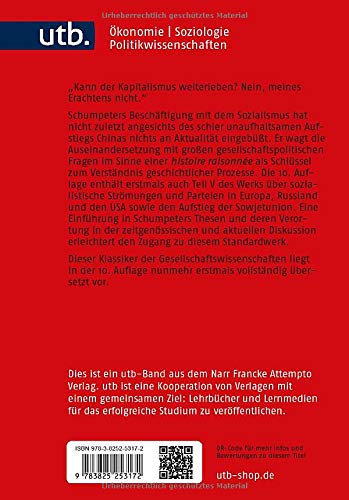 Eine Einführung in Schumpeters Thesen und deren Verortung in der zeitgenössischen und aktuellen Diskussion sowie eine Auswahlbibliografie erleichtern den Zugang zu diesem Standardwerk. Dieser Klassiker der Gesellschaftswissenschaften liegt in der 10. Auflage nunmehr erstmals vollständig übersetzt vor.
