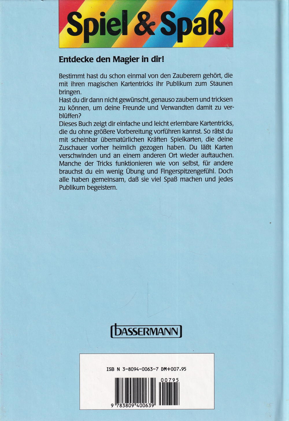Dieses Buch zeigt dir einfache und leicht erlernbare Kartentricks, die du ohne grössere Vorbereitung vorführen kannst. So rätst du mit scheinbar übernatürlichen Kräften Spielkarten, die deine Zuschauer vorher heimlich gezogen haben. Du lässt Karten verschwinden und an einem anderen Ort wieder auftauchen.