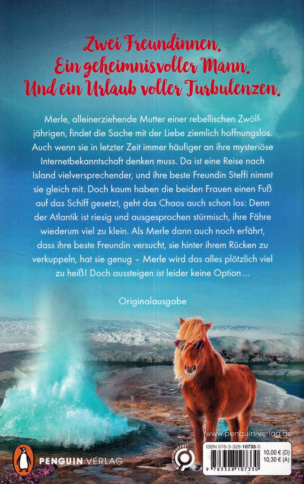 Zwei Freundinnen. Ein geheimnisvoller Mann. Und ein Urlaub voller Turbulenzen. Merle, alleinerziehende Mutter einer rebellischen Zwölfjährigen, findet die Sache mit der Liebe ziemlich hoffnungslos. Auch wenn sie in letzter Zeit immer häufiger an ihre mysteriöse Internetbekanntschaft denken muss. Da ist eine Reise nach Island vielversprechender, und ihre beste Freundin Steffi nimmt sie gleich mit. Doch kaum haben die beiden Frauen einen Fuss auf das Schiff gesetzt, geht das Chaos auch schon los: Denn der Atlantik ist riesig und ausgesprochen stürmisch, ihre Fähre wiederum viel zu klein. Als Merle dann auch noch erfährt, dass ihre beste Freundin versucht, sie hinter ihrem Rücken zu verkuppeln, hat sie genug – Merle wird das alles plötzlich viel zu heiss! Doch aussteigen ist leider keine Option …