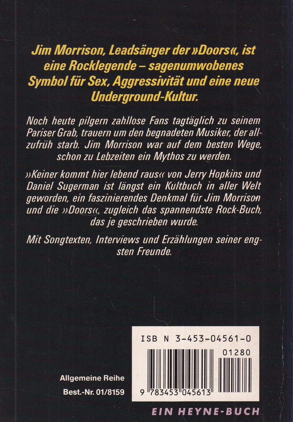 »Keiner kommt hier lebend raus« von Jerry Hopkins und Daniel Sugerman ist längst ein Kultbuch in aller Welt geworden, ein faszinierendes Denkmal für Jim Morrison und die »Doors«, zugleich das spannendste Rock-Buch, das je geschrieben wurde.