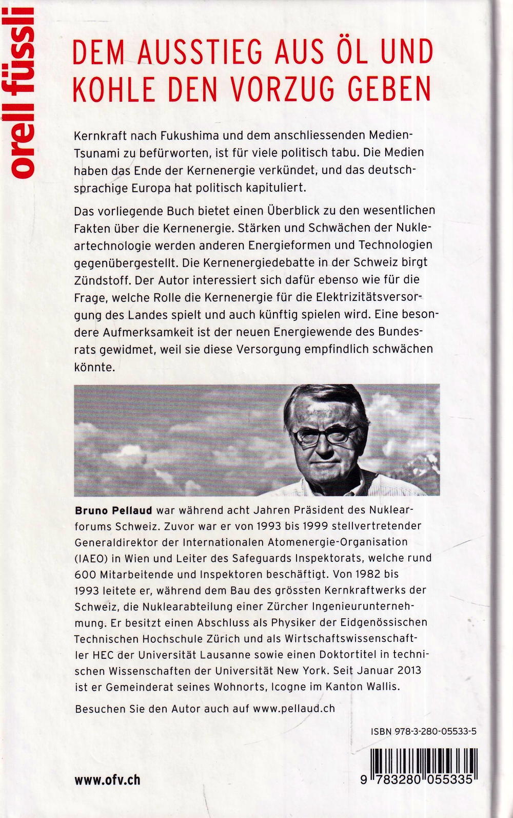 Dr. Bruno Pellaud war 1993-99 stv. Generaldirektor der Internationalen Atomenergie-Organisation (IAEO) in Wien. Früher leitete er die Nuklearabteilung einer Zürcher Ingenieurunternehmung während dem Bau des grössten KKW der Schweiz. Akademisch: Physiker der ETHZ, Wirtschaftswissenschaftler der Uni Lausanne und Doktor der Uni New York. Seit 2013 ist er Gemeinderat seines Wohnorts, Icogne (VS).