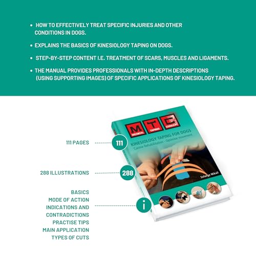 In diesem Buch über kinesiologisches Taping bei Hunden lernen Tiertherapeuten, wie sie bestimmte Verletzungen und andere Erkrankungen bei Hunden mit dem elastischen VetkinTape behandeln können. Lernen Sie die Grundlagen des Tapings und folgen Sie der Schritt-für-Schritt- Anleitungen mit den klaren Illustrationen und Fotos mit verschiedenen Arten von Hunden.