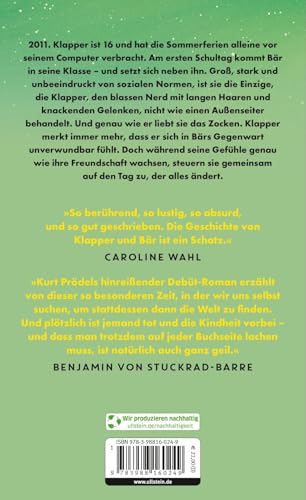 Sommer 2011. Klapper ist sechzehn und hat die Sommerferien alleine vor seinem Computer verbracht. Am ersten Schultag kommt plötzlich Bär in seine Klasse - und setzt sich neben ihn. Gross, stark und absolut unbeeindruckt von sozialen Normen, ist sie die Einzige, die Klapper, den blassen Nerd mit langen Haaren und knackenden Gelenken, nicht wie einen Aussenseiter behandelt. Und genau wie er liebt sie das Zocken. Klapper merkt immer mehr, dass er sich in Bärs Gegenwart unverwundbar fühlt. Doch während seine Gefühle genau wie ihre Freundschaft wachsen, steuern sie gemeinsam auf den Tag zu, der alles ändert. Zitroneneistee, Counter-Strike, Kollegah-Punchlines - KLAPPER erzählt von Freundschaft, Verlust, toxischer Männlichkeit und davon, wie anstrengend das Erwachsenwerden zwischen Online- und Offline-Realitäten ist. Eine eindringliche, fesselnde und liebevolle Geschichte über eine lebensverändernde Begegnung. »Kurt Prödels hinreissender Debüt-Roman erzählt von dieser so besonderen Zeit, in der wir uns selbst suchen, um stattdessen dann die Welt zu finden. Und plötzlich ist jemand tot und die Kindheit vorbei – und dass man trotzdem auf jeder Buchseite lachen muss, ist natürlich auch ganz geil. « Benjamin von Stuckrad-Barre