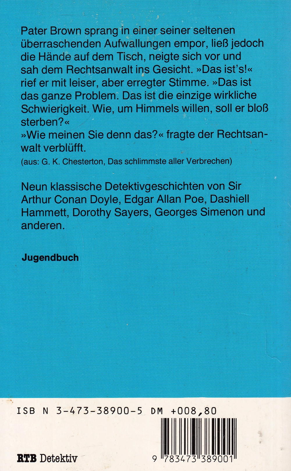 Pater Brown sprang in einer seiner seltenen überraschenden Aufwallungen empor, liess jedoch die Hände auf dem Tisch, neigte sich vor und sah dem Rechtsanwalt ins Gesicht. »Das ist's! « rief er mit leiser, aber erregter Stimme. »Das ist das ganze Problem. Das ist die einzige wirkliche Schwierigkeit. Wie, um Himmels willen, soll er bloss sterben? «