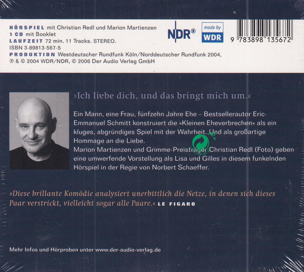Ein Mann, eine Frau, fünfzehn Jahre Ehe Bestsellerautor Eric-Emmanuel Schmitt konstruiert die »Kleinen Eheverbrechen« als ein kluges, abgründiges Spiel mit der Wahrheit. Und als grossartige Hommage an die Liebe. Marion Martienzen und Grimme-Preisträyer Christian Redl. (Foto) geben eine umwerfende Vorstellung als Lisa und Gilles in diesem funkelnden Hörspiel in der Regie von Norbert Schaeffer.