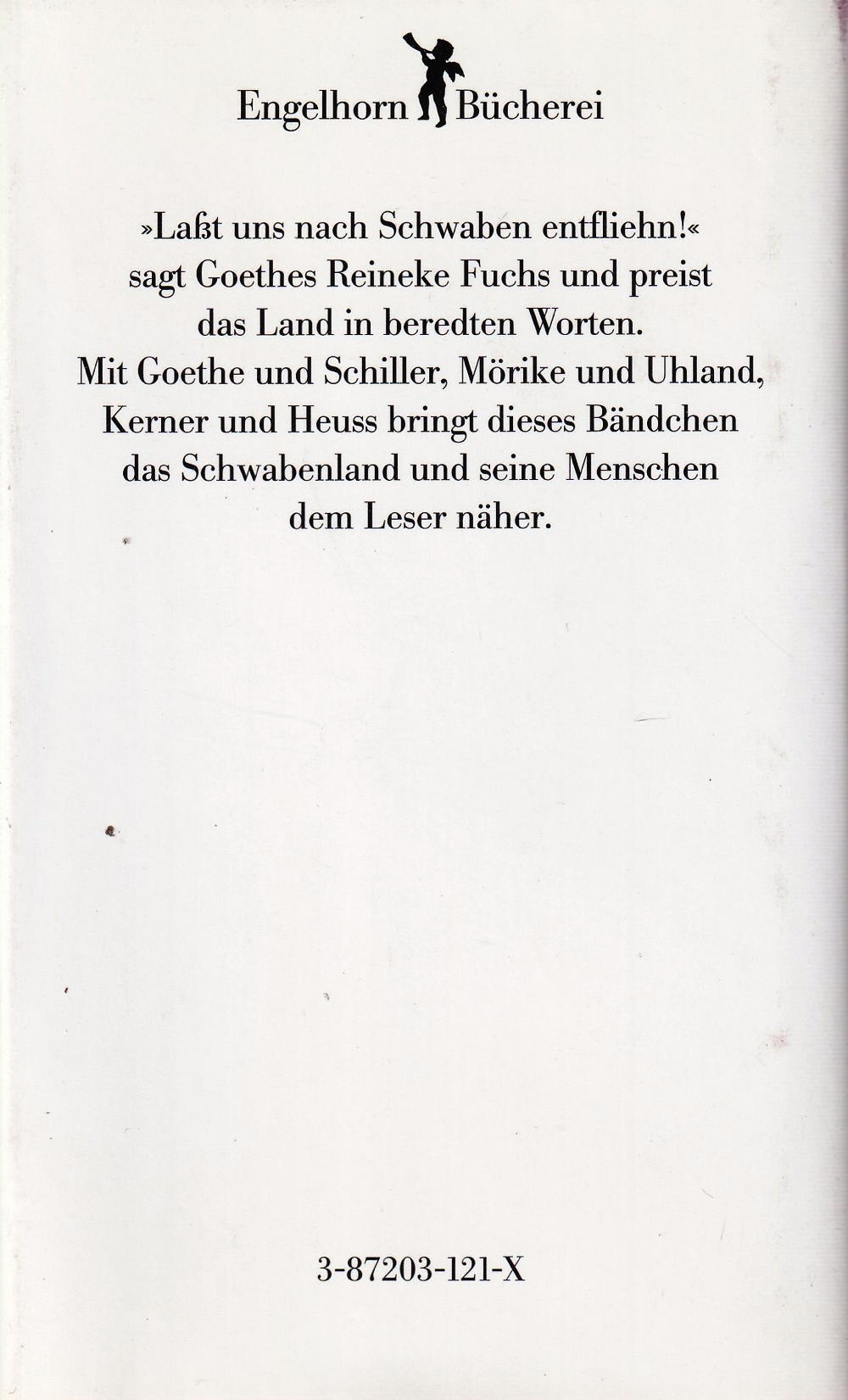 Mit Goethe und Schiller, Mörike und Uhland, Kerner und Heuss bringt dieses Bändchen das Schwabenland und seine Menschen dem Leser näher.