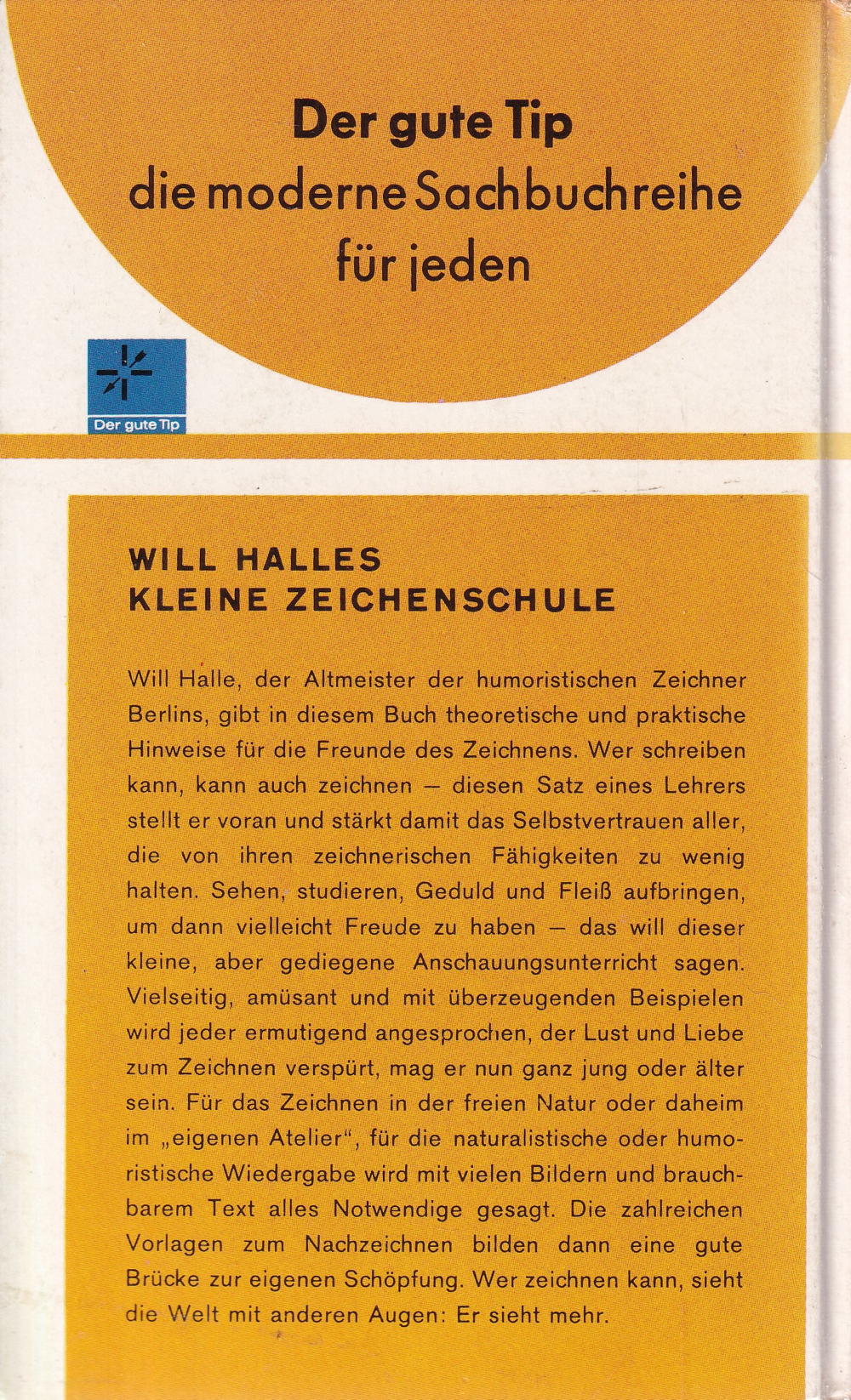 Will Halle, der Altmeister der humoristischen Zeichner Berlins, gibt in diesem Buch theoretische und praktische Hinweise für die Freunde des Zeichnens. Wer schreiben kann, kann auch zeichnen diesen Satz eines Lehrers stellt er voran und stärkt damit das Selbstvertrauen aller, die von ihren zeichnerischen Fähigkeiten zu wenig halten. Sehen, studieren, Geduld und Fleiss aufbringen, um dann vielleicht Freude zu haben das will dieser kleine, aber gediegene Anschauungsunterricht sagen.