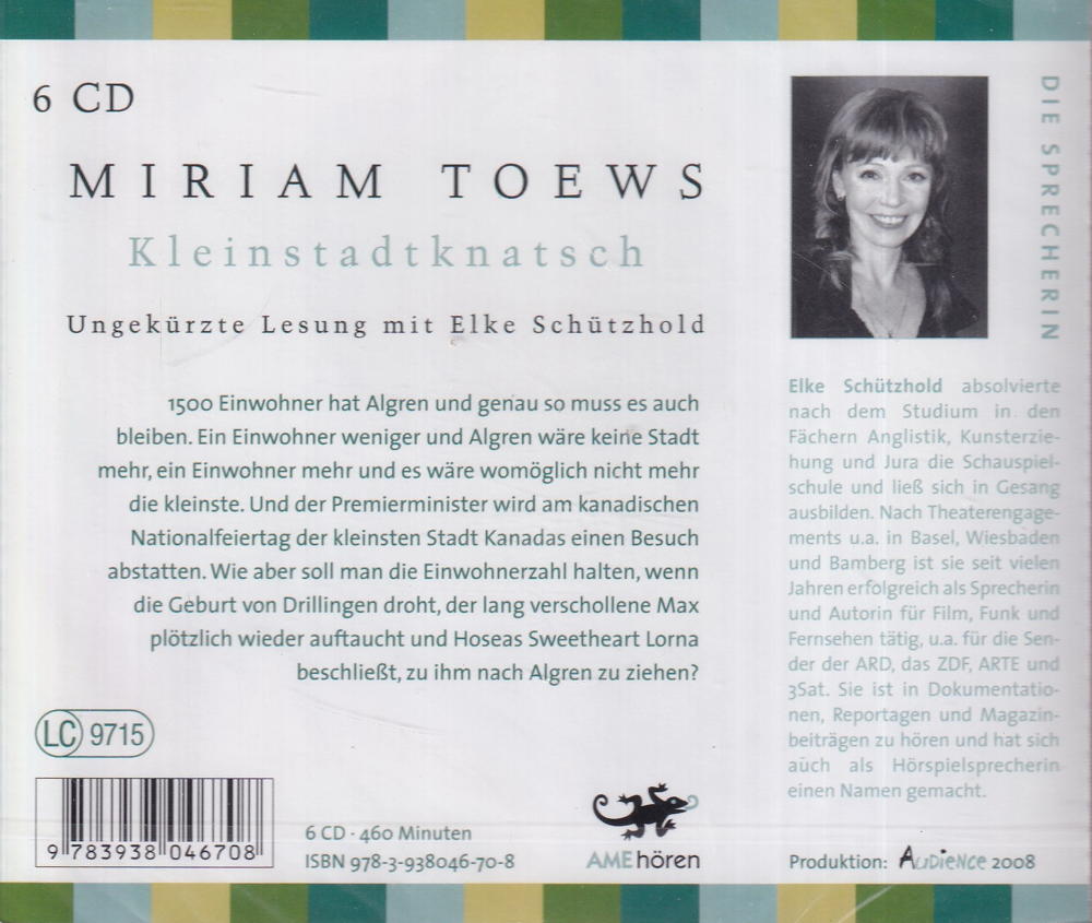 Miriam Toews wurde in Steinbach geboren, einer Mennonitengemeinde im Staat Manitoba. Sie studierte Geisteswissenschaften und Journalismus und lebt heute als Journalistin und Autorin in Winnipeg. Für ihre bisherigen Bücher erhielt sie zahlreiche Preise und Stipendien. Ein komplizierter Akt der Liebe, in Kanada ein Bestseller, wurde mit dem renommierten Governor General s Literary Award ausgezeichnet. 2006 hatte Miriam Toews ihr Debüt als Schauspielerin: Sie spielte in Carlos Reygadas Film Stilles Licht, der demnächst in deutschen Kinos zu sehen sein wird.