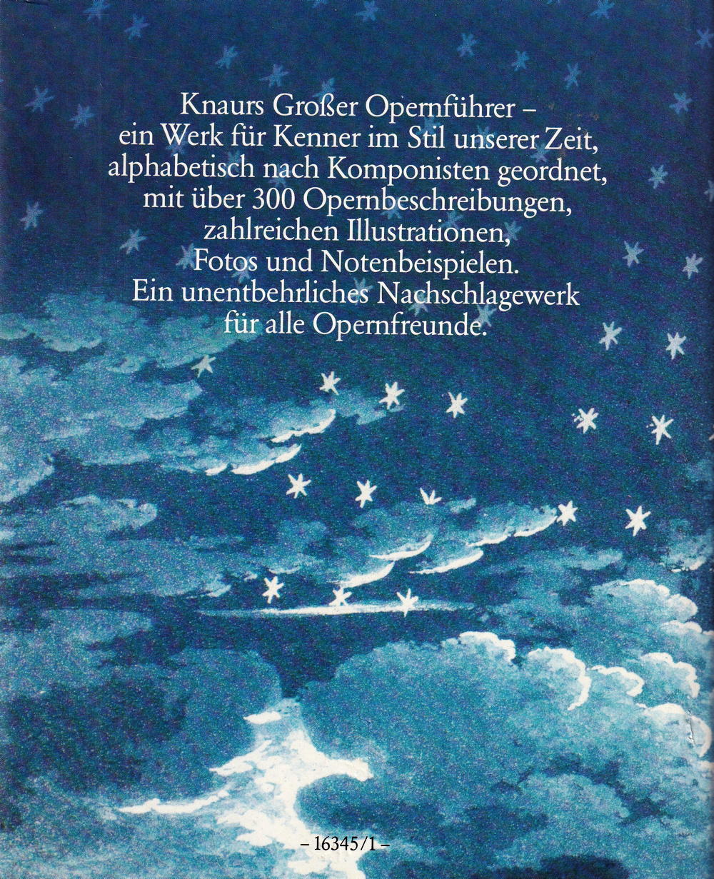 Knaurs Grosser Opernführer – ein Werk für Kenner im Stil unserer Zeit, alphabetisch nach Komponisten geordnet, mit über 300 Opernbeschreibungen, zahlreichen Illustrationen, Fotos und Notenbeispielen.