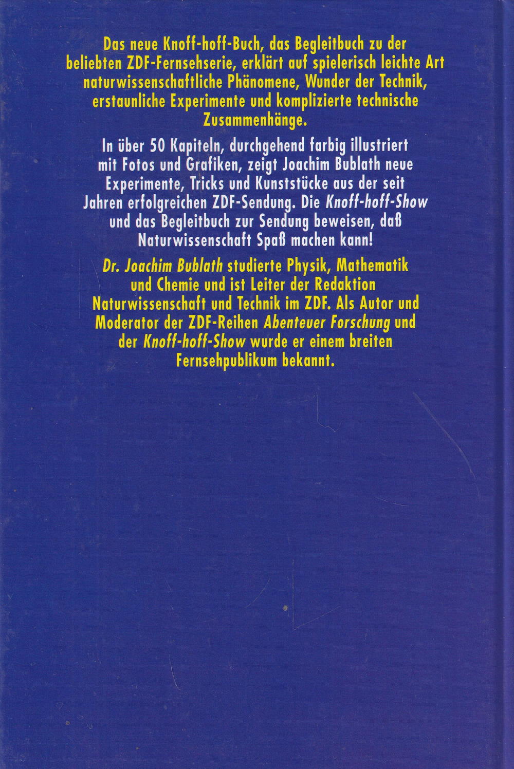 In über 50 Kapiteln, durchgehend farbig illustriert mit Fotos und Grafiken, zeigt Joachim Bublath neue Experimente, Tricks und Kunststücke aus der seit Jahren erfolgreichen ZDF-Sendung. Die Knoff-hoff-Show und das Begleitbuch zur Sendung beweisen, dass Naturwissenschaft Spass machen kann!