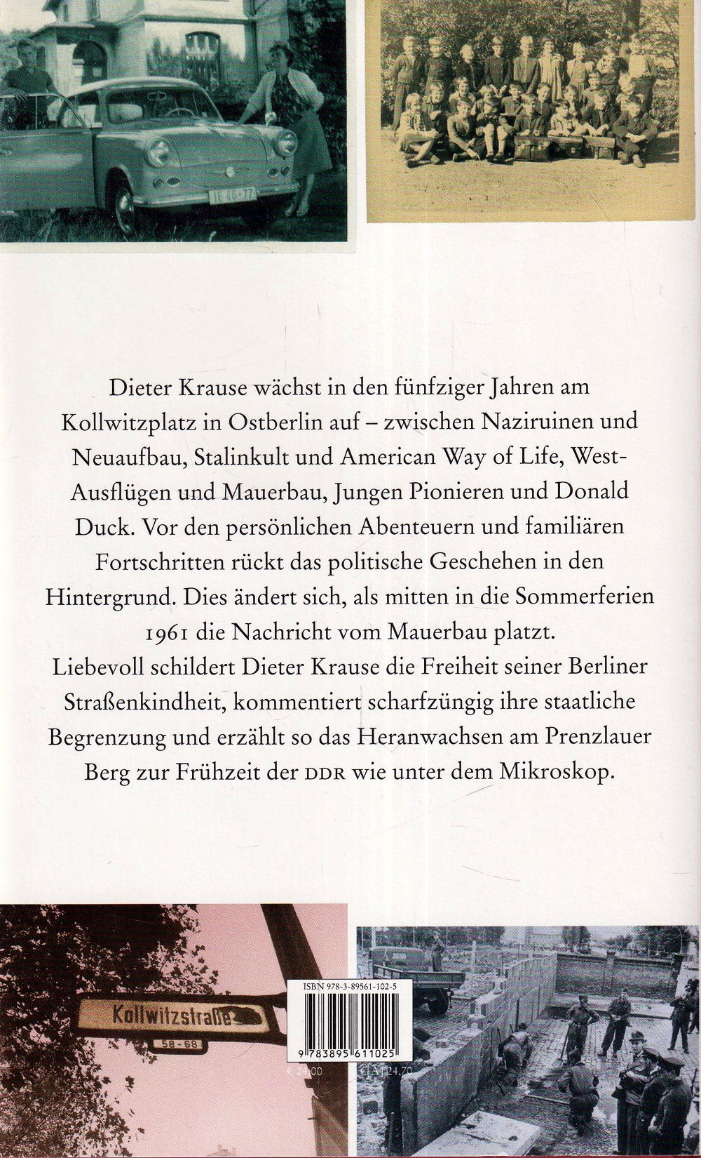 Dieter Krause wächst am Ost-Berliner Kollwitzplatz auf, dessen Hinterhöfe den Murmelspielern und Indianern gehören. Anstelle von ideologischen Kämpfen werden Konflikte mit Tüten voller Wasser und Stinkbomben ausgefochten. Die fünfziger Jahre sind für den Jungen eine Übergangszeit: Zwischen heimlich gehörten Elvis-Songs und Begegnungen mit russischen Soldaten wechselt er regelmässig von einem Sektor in den anderen und beinah ebenso häufig die Schule.