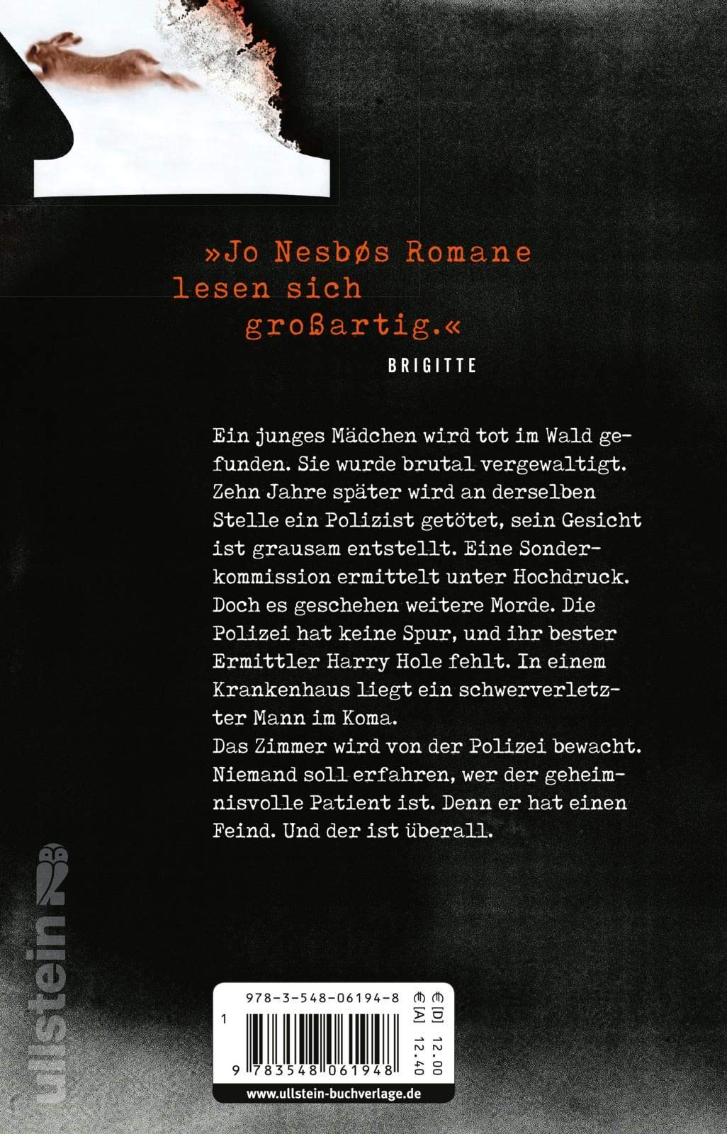 Ein junges Mädchen wird tot im Wald gefunden. Sie wurde brutal vergewaltigt. Zehn Jahre später wird an derselben Stelle ein Polizist getötet, sein Gesicht ist grausam entstellt. Eine Sonderkommission ermittelt unter Hochdruck. Doch es geschehen weitere Morde. Die Polizei hat keine Spur, und ihr bester Ermittler Harry Hole fehlt.