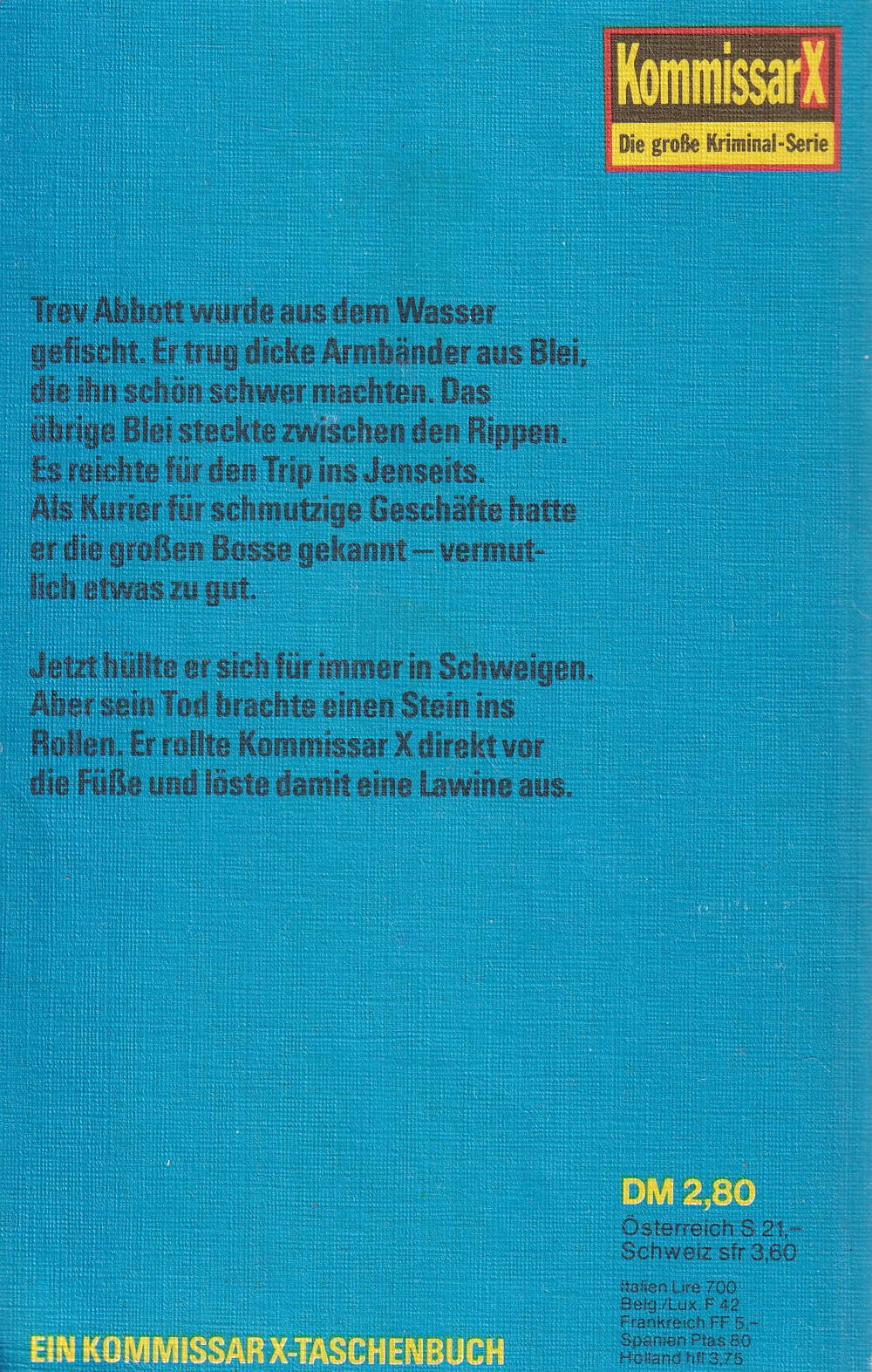 Jetzt hüllte er sich für immer in Schweigen. Aber sein Tod brachte einen Stein ins Rollen. Er rollte Kommissar X direkt vor die Füsse und loste damit eine Lawine aus.