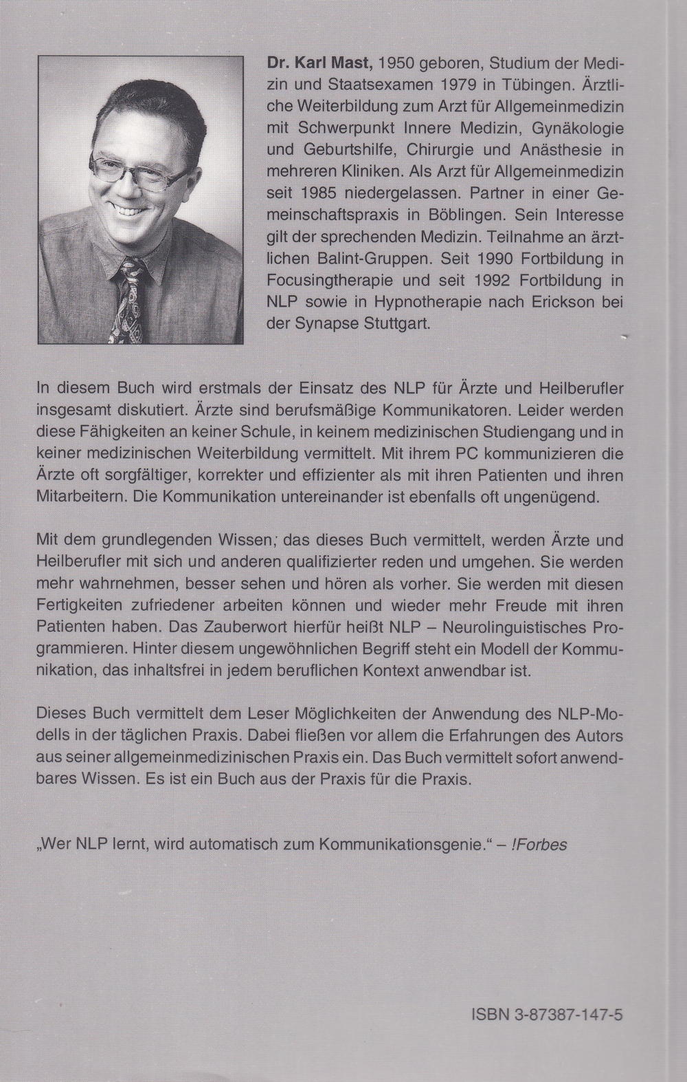Mit dem grundlegenden Wissen, das dieses Buch vermittelt, werden Ärzte und Heilberufler mit sich und anderen qualifizierter reden und umgehen. Sie werden mehr wahrnehmen, besser sehen und hören als vorher. Sie werden mit diesen Fertigkeiten zufriedener arbeiten können und wieder mehr Freude mit ihren Patienten haben. Das Zauberwort hierfür heisst NPL - Neurolinguistisches Programmieren. Hinter diesem ungewöhnlichen Begriff steht ein Modell der Kommunikation, das inhaltsfrei in jedem beruflichen Kontext anwendbar ist.