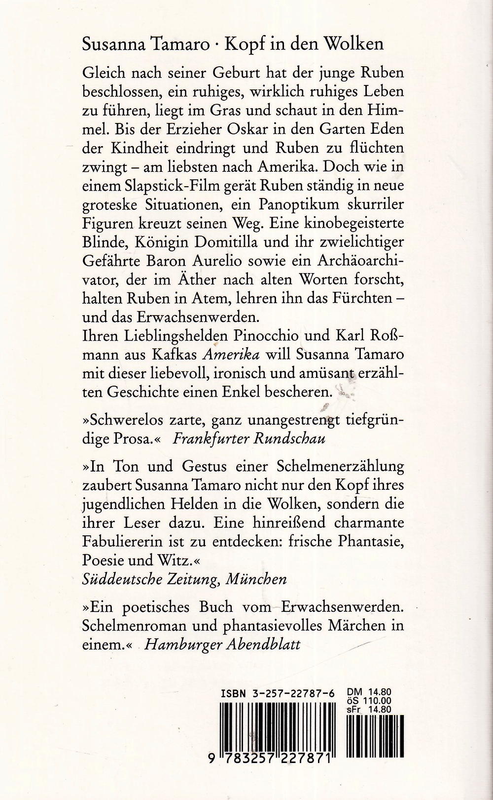 Susanna Tamaro wurde 1957 in Triest geboren; sie ist die Grossnichte von Italo Svevo. Längere Zeit war sie Dokumentarfilmerin für das italienische Fernsehen, heute lebt sie als freie Schriftstellerin in Rom und bei Orvieto.