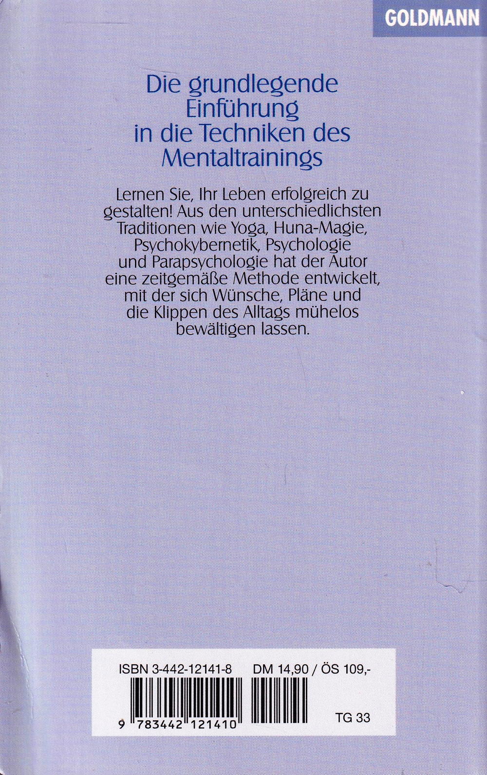 Die grundlegende Einführung in die Techniken des Mentaltrainings Lernen Sie, Ihr Leben erfolgreich zu gestalten! Aus den unterschiedlichsten Traditionen wie Yoga, Huna-Magie, Psychokybernetik, Psychologie und Parapsychologie hat der Autor eine zeitgemäße Methode entwickelt, mit der sich Wünsche, Pläne und die Klippen des Alltags mühelos bewältigen lassen.