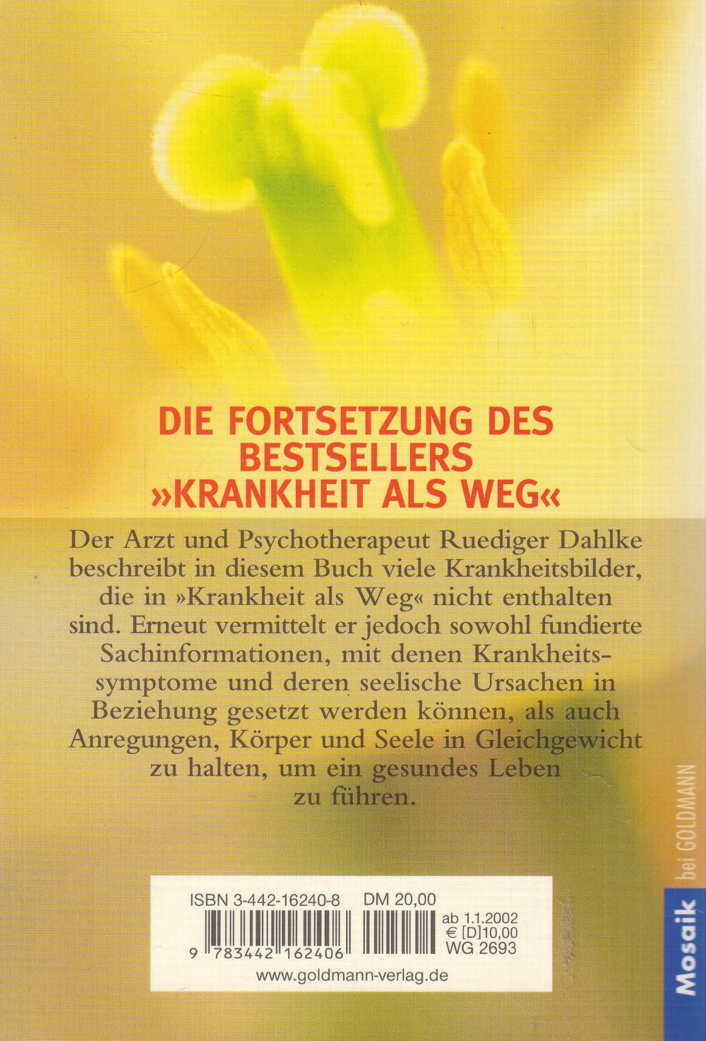 Werden die Botschaften der Seele ignoriert oder geistig-seelische Wachstumsprozesse nicht zugelassen, so erkrankt der Körper und zeigt deutliche Symptome. Was will mein Körper mir damit sagen? Ruediger Dahlke gibt in diesem umfassenden Kompendium informative, leicht nachvollziehbare Anleitungen, diese Sprache des Körpers zu verstehen. Von den Haarspitzen bis zu den Fussnägeln untersucht er Krankheitsbilder und erklärt ihre möglichen psychischen Ursachen. So kann Krankheit als Chance begriffen werden, Körper und Seele wieder in Harmonie zu bringen und zu halten.