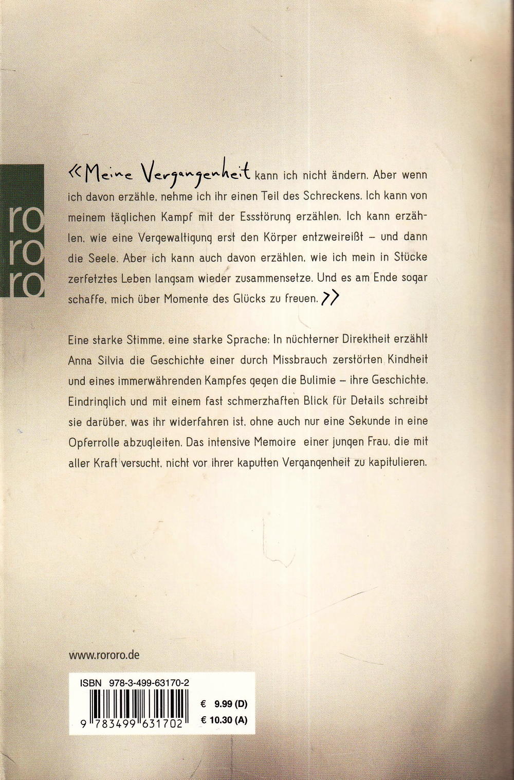 Eine starke Stimme, eine starke Sprache: In nüchterner Direktheit erzählt Anna Silvia die Geschichte einer durch Missbrauch zerstörten Kindheit und eines immerwährenden Kampfes gegen die Bulimie - ihre Geschichte. Eindringlich und mit einem fast schmerzhaften Blick für Details schreibt sie darüber, was ihr widerfahren ist, ohne auch nur eine Sekunde in eine Opferrolle abzugleiten. Das intensive Memoir einer jungen Frau, die mit aller Kraft versucht, nicht vor ihrer kaputten Vergangenheit zu kapitulieren.