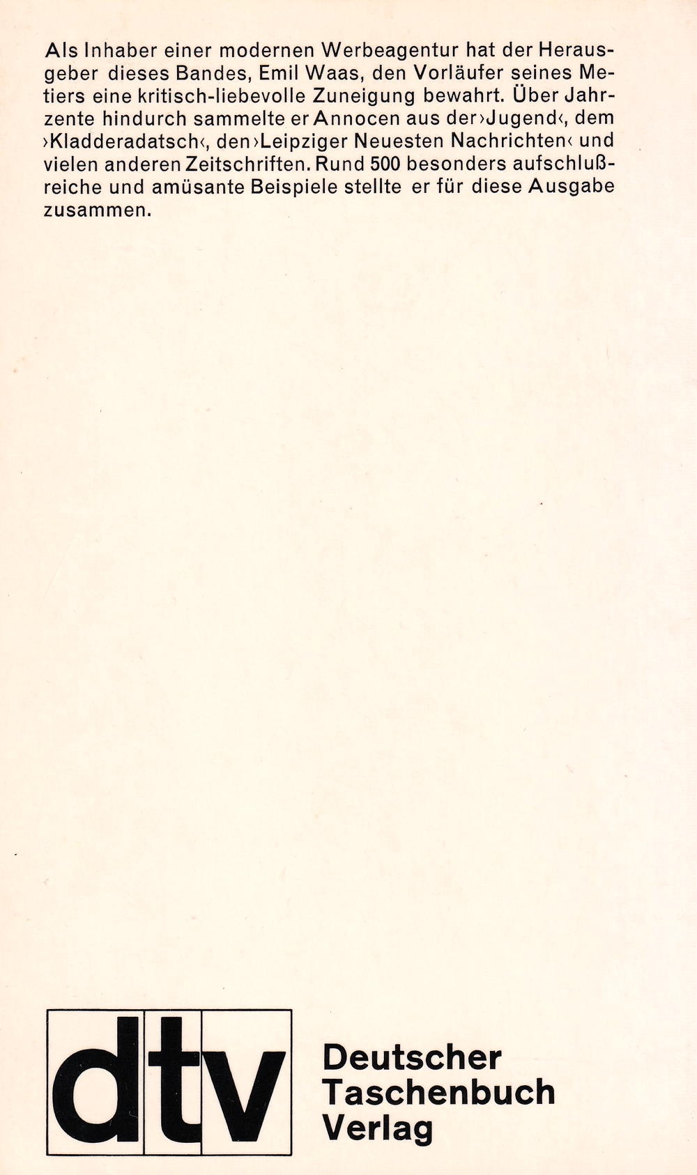 Undeutsch sei es, Pariser Korsetts zu tragen, hiess es in einer Anzeige während des Ersten Weltkriegs, in der die Vorzüge deutscher Miederwaren angepriesen wurden. Sie durfte in dieser Sammlung nicht fehlen, deren Inhalt von kuriosen und heute unfreiwillig komisch wirkenden Annoncen der Jahrhundertwende bestimmt ist. Aber auch der soziologisch und kulturgeschichtlich Interessierte wird in dieser umfangreichen, in Faksimile wiedergegebenen Sammlung mancherlei Entdeckungen machen können. So etwa, wenn Regenschirme mit verborgenen Gummiknüppeln angeboten werden und in der entsprechenden Illustration Herren in Frack und Zylinder auf finstere Gestalten einschlagen, die Ballonmützen tragen und unschwer als Sozialrevolutionäre zu erkennen sind. Auch der Vergleich mit gewissen Kleinanzeigen von heute dürfte den Leser überraschen. So gross sind die Unterschiede nicht.