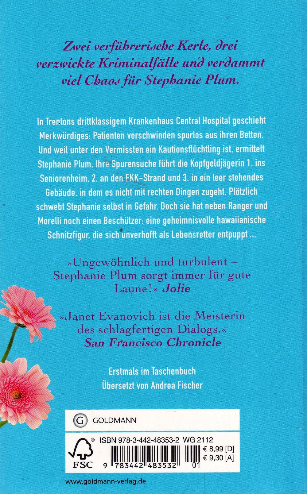 In Trentons drittklassigem Krankenhaus Central Hospital geschehen merkwürdige Dinge: Patienten verschwinden spurlos aus ihren Klinikbetten. Und weil unter den Vermissten ein Kautionsflüchtling ist, ermittelt Stephanie Plum in dem rätselhaften Fall. Ihre Spurensuche führt die Kopfgeldjägerin 1. in ein Seniorenheim, dessen Bewohner um ihre Ersparnisse gebracht wurden, 2. an den FKK-Strand und 3. in ein leerstehendes Gebäude, in dem es nicht mit rechten Dingen zugeht. Mit einem Mal schwebt Stephanie selbst in Gefahr. Doch sie hat neben Ranger und Morelli einen dritten Beschützer: eine geheimnisvolle hawaiianische Schnitzfigur, die sich unverhofft als Lebensretter entpuppt ...