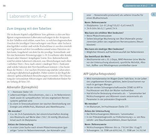 Ist das Ergebnis der Laboruntersuchung eingetroffen, ist die Unsicherheit meist gross. Wie hoch dürfen die Werte für Triglyceride, Cholesterin oder Harnsäure sein? Was sagt eine Blutsenkung aus? Und warum können Messergebnisse manchmal verfälscht sein? Was der Arzt in Blut und Urin erkennen kann und welche Befunde Anlass zur Behandlung geben, all das erklärt der Grosse GU Kompass Laborwerte. Von A wie Adrenalin bis Z wie Zink werden Normbereiche aufgezeigt sowie mögliche Ursachen für Abweichungen erörtert. Darüber hinaus informiert der Ratgeber über die häufigsten Untersuchungsmethoden, Fachbegriffe und Selbsttests für zu Hause. So ist der Grosse GU Kompass Laborwerte eine unerlässliche Hilfe für das Gespräch mit dem Arzt.