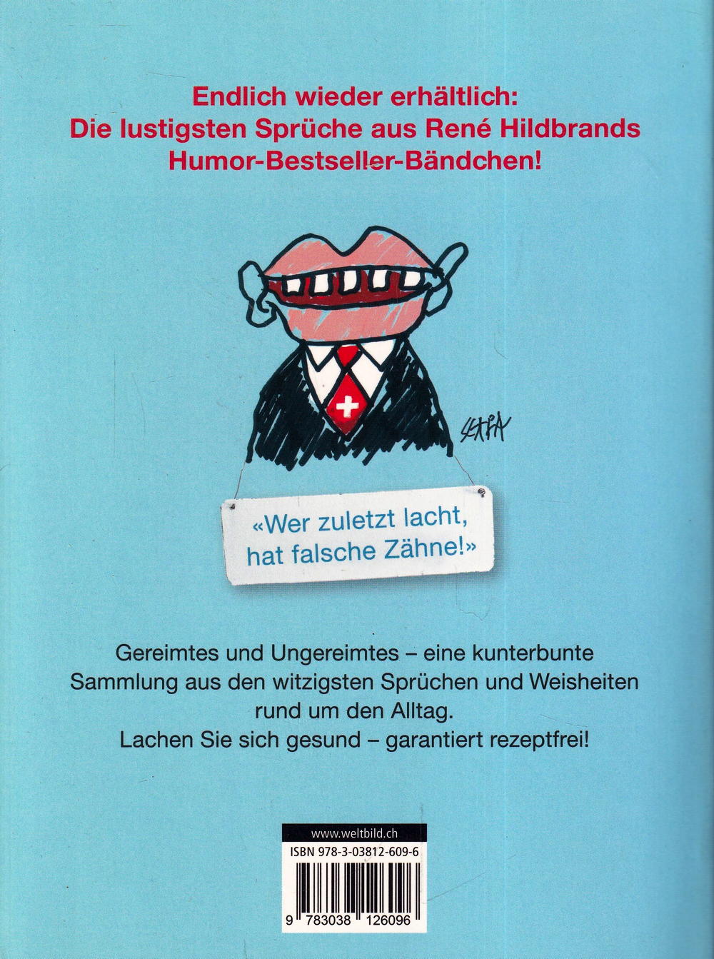 Heiterkeit und Lachen lösen Spannungen, Probleme werden für eine Weile vergessen, Lachen ist inneres Joggen. und: Die Menschen sind zweifelsfrei am liebenswürdigsten, wenn sie am frohesten sind. Lassen Sie sich deshalb von diesen witzigen Sprüchen unterhalten. Eine bunte Best-of-Sammlung der lustigsten Sprüche, Reime und Alltags-Weisheiten hat René Hildbrand hier zusammengestellt: Aus den erfolgreichen Humor-Bändchen, die seinerzeit im Berner Benteli-Verlag erschienen sind. Machen wir es also kurz: Legen Sie dieses Bändchen auf Ihren Nachttisch und vertreiben Sie sich damit die Zeit. Sie werden Spass daran haben.