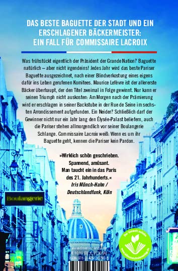 Kommissar Lacroix, den seine Kollegen scherzhaft »den neuen Maigret« nennen, löst seinen zweiten Fall in der liebenswert-nostalgischen Krimi-Reihe aus Paris von Alex Lépic. Selbst der Präsident der Grande Nation liebt es zum Frühstück – Baguette, aber selbstverständlich nicht irgendeines. Jedes Jahr kürt eine Kommission das beste Baguette in Paris. Doch dieses Jahr gibt es eine Sensation, denn Maurice Lefèvre ist der erste Bäcker, der die begehrte Auszeichnung zweimal in Folge gewinnt. Leider kann er seinen Triumph nicht lange geniessen: Bereits am nächsten Morgen findet man Maurice erschlagen in seiner Backstube. Hat hier ein Konkurrent die Contenance verloren? Immerhin darf der prämierte Bäcker nicht nur ein Jahr lang den Élysée-Palast beliefern, auch die Pariser stehen allmorgendlich vor seiner Boulangerie Schlange. Kommissar Lacroix weiss: Wenn es um ihr Baguette geht, kennen die Pariser kein Pardon!