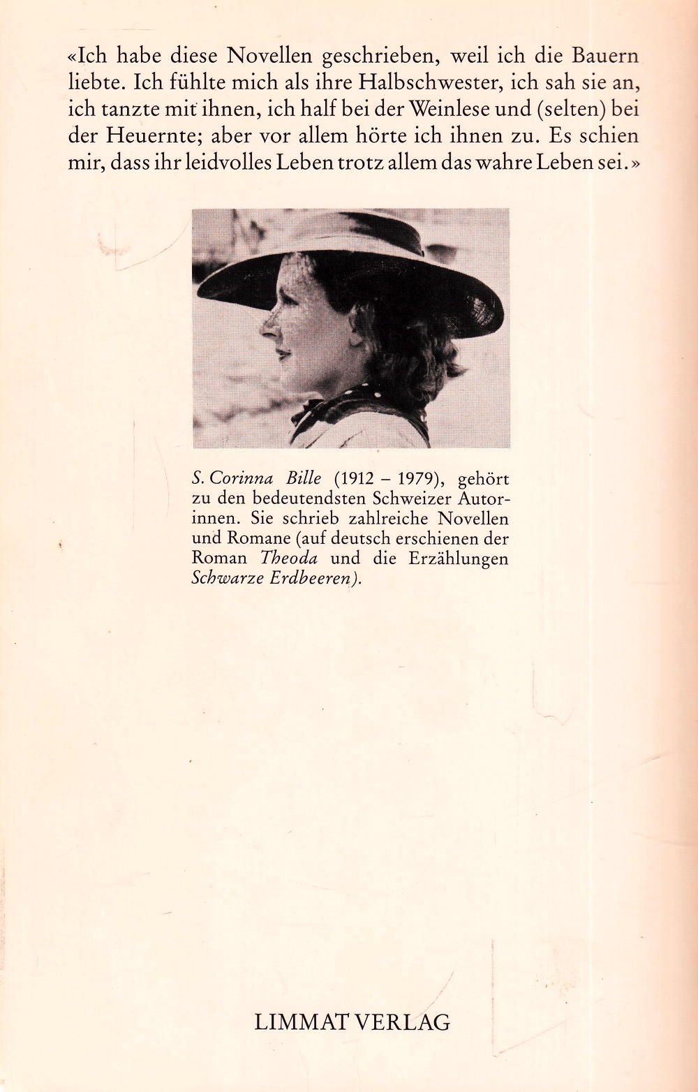 «Ich habe diese Novellen geschrieben, weil ich die Bauern liebte. Ich fühlte mich als ihre Halbschwester, ich sah sie an, ich tanzte mit ihnen, ich half bei der Weinlese und (selten) bei der Heuernte; aber vor allem hörte ich ihnen zu. Es schien mir, dass ihr leidvolles Leben trotz allem das wahre Leben sei. »