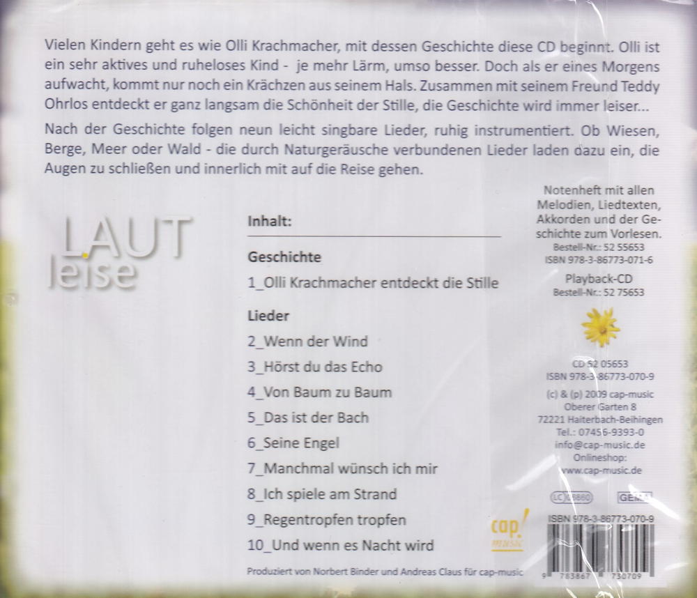 Vielen Kindern geht es wie Olli Krachmacher, mit dessen Geschichte diese CD beginnt. Olli ist ein sehr aktives und ruheloses Kind - je mehr Lärm, umso besser. Doch als er eines Morgens aufwacht, kommt nur noch ein Krächzen aus seinem Hals. Zusammen mit seinem Freund Teddy Ohrlos entdeckt er ganz langsam die Schönheit der Stille, die Geschichte wird immer leiser... Nach der Geschichte folgen neun leicht singbare Lieder, ruhig instrumentiert. Ob Wiesen, Berge, Meer oder Wald - die durch Naturgeräusche verbundenen Lieder laden dazu ein, die Augen zu schliessen und innerlich mit auf die Reise gehen.