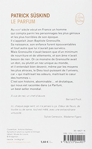 Au XVIIIe siècle vécut en France un homme qui compta parmi les personnages les plus géniaux et les plus horribles de son époque. Il s'appelait Jean-Baptiste Grenouille. Sa naissance, son enfance furent épouvantables et tout autre que lui n'aurait pas survécu. Mais Grenouille n'avait besoin que d'un minimum de nourriture et de vêtements, et son âme n'avait besoin de rien. Or ce monstre de Grenouille, car il s'agissait bel et bien d'un genre de monstre, avait un don, ou plutôt un nez unique au monde et il entendait bien devenir, même par les moyens les plus atroces, le Dieu tout-puissant de l'univers, car « qui maîtrisait les odeurs, maîtrisait le coeur des hommes ». C'est son histoire, abominable… et drolatique, qui nous est racontée dans Le Parfum, un roman très vite devenu un best seller mondial, et aujourd'hui porté à l'écran.