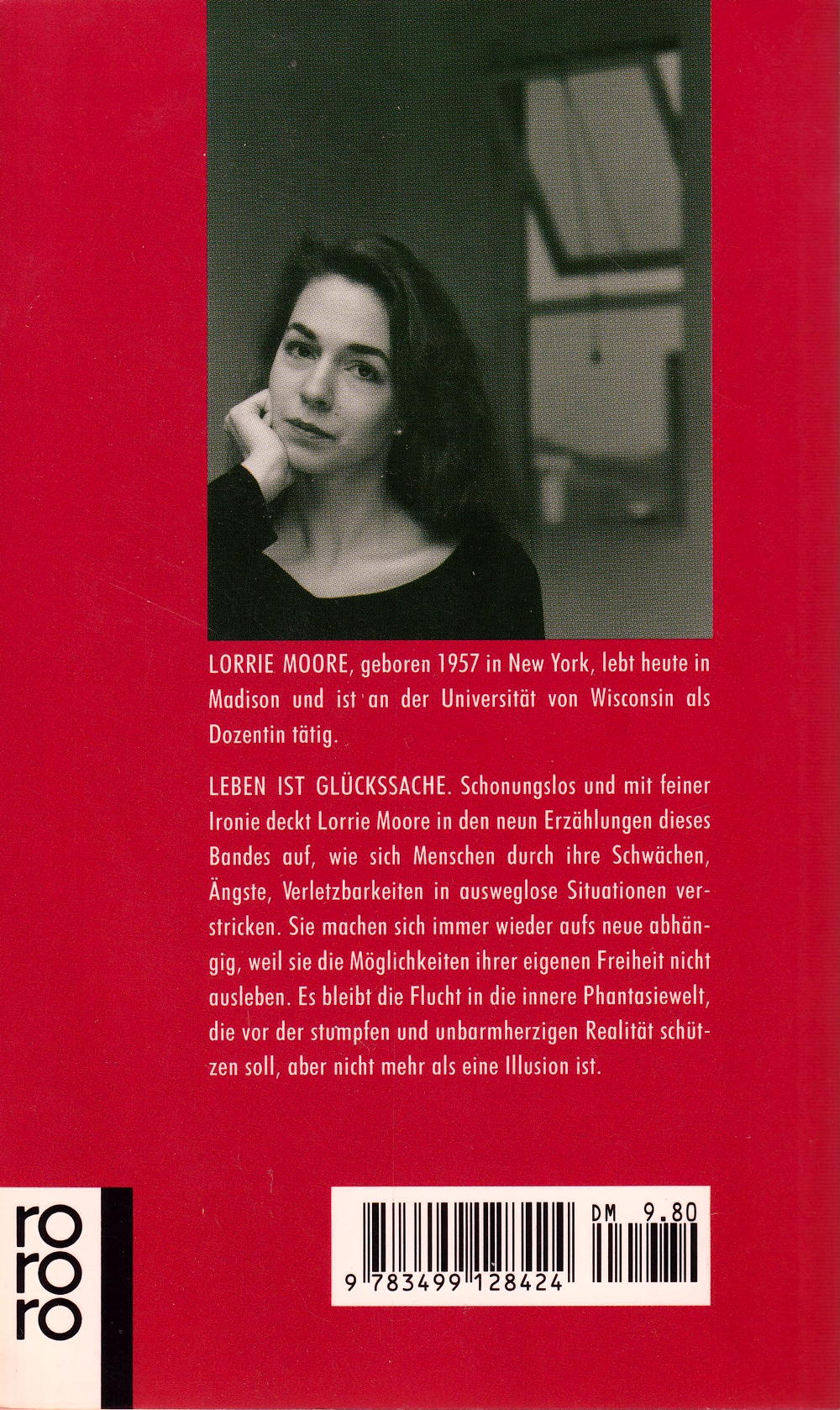LEBEN IST GLÜCKSSACHE. Schonungslos und mit feiner Ironie deckt Lorrie Moore in den neun Erzählungen dieses Bandes auf, wie sich Menschen durch ihre Schwächen, Angste, Verletzbarkeiten in ausweglose Situationen verstricken. Sie machen sich immer wieder aufs neue abhängig, weil sie die Möglichkeiten ihrer eigenen Freiheit nicht ausleben. Es bleibt die Flucht in die innere Phantasiewelt, die vor der stumpfen und unbarmherzigen Realität schützen soll, aber nicht mehr als eine Illusion ist.