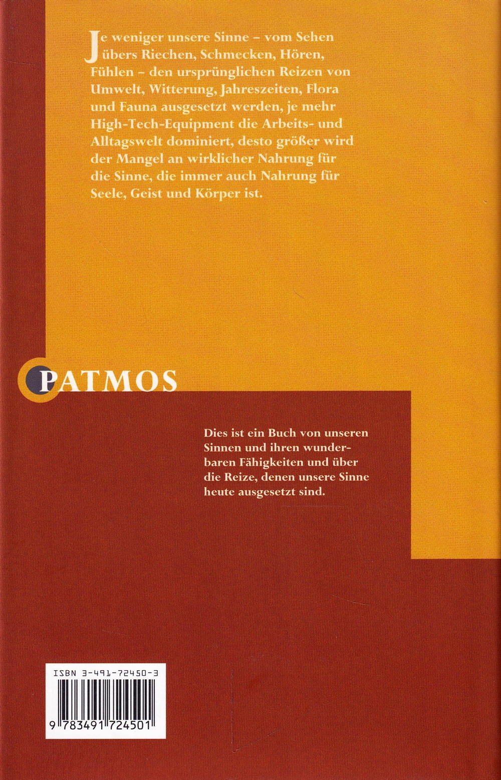 Je weniger unsere Sinne - vom Sehen übers Riechen, Schmecken, Hören, Fühlen - den ursprünglichen Reizen von Umwelt, Witterung, Jahreszeiten, Flora und Fauna ausgesetzt werden, je mehr High-Tech-Equipment die Arbeits- und Alltagswelt dominiert, desto größer wird der Mangel an wirklicher Nahrung für die Sinne, die immer auch Nahrung für Seele, Geist und Körper ist.