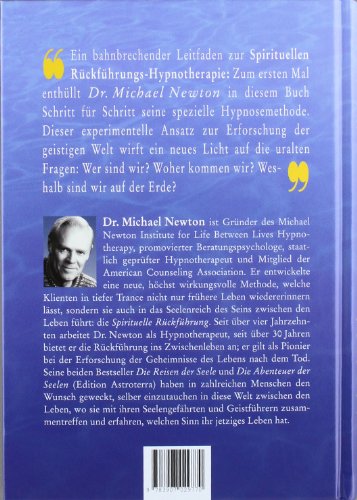 Zum ersten Mal enthüllt Dr. Michael Newton in diesem Buch Schritt für Schritt seine spezielle Hypnosemethode. Sein experimenteller Ansatz zur Erforschung der geistigen Welt wirft neues Licht auf die uralte Frage, wer wir sind, woher wir kommen und weshalb wir auf der Erde sind. – Ein bahnbrechender Leitfaden zur spirituellen Rückführungs-Hypnotherapie. Schlüsselthema dieser Methode sind die Mittel und Wege, einen überbewussten Trancezustand zu erreichen, um sich an das eigene unsterbliche Wesen zu erinnern. So kann jeder Mensch im Zuge gesteigerter Wahrnehmung ganz persönliche Antworten auf jene Fragen finden, die ihn zutiefst beschäftigen, und in seinem Sein und Wesen hier auf Erden einen höheren Sinn erkennen.