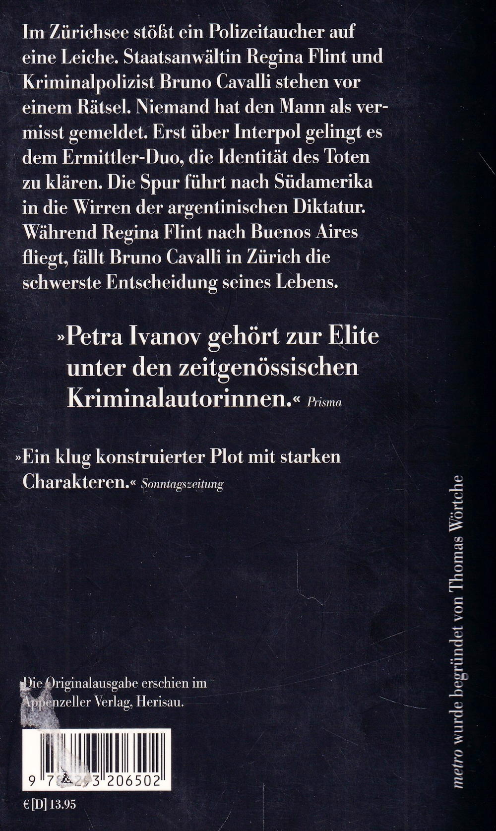 Bei der Bergung eines Schiffsmotors vom Grund des Zürichsees stößt ein Polizeitaucher auf die Leiche eines Mannes. Dessen Glieder wurden mit Hanteln beschwert, was einen Unfall ausschließt. Da der Tote in der Schweiz nicht vermisst wird, schalten Staatsanwältin Regina Flint und Kriminalpolizist Bruno Cavalli Interpol ein. Bald wird klar: Die Beschreibung passt auf einen argentinischen Journalisten, der vor sechs Monaten spurlos verschwunden ist. Doch was führte Ramón Penasso nach Zürich? Und woran arbeitete er vor seinem Tod?