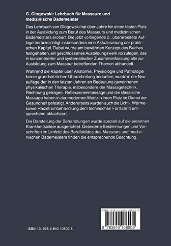 Das Lehrbuch von Glogowski hat über Jahre hin einen festen Platz in der Ausbildung zum Beruf des Masseurs und medizi nischen Bademeisters erobert. Dabei wurde jedoch immer mehr der Wunsch nach einer Aktualisierung der praktischen Kapitel deutlich. Infolge seines Todes kam Dr. Georg Glogowski nicht mehr dazu, die von ihm intendierte Neubearbeitung abzu schliessen. Bei der Vorbereitung der Neuauflage liessen wir uns von dem Gedanken leiten, das Grundkonzept des Glogow skischen Lehrbuches beizubehalten und nur dort zu ändern, wo die Entwicklung der letzten Jahre dies erforderte. Ganz besonders lag uns am Herzen, dass das Grundanliegen von Dr. Georg Glo gowski auch in der neuen Auflage erhalten blieb. Sein Buch war und ist ein geschlossenes Ausbildungswerk, welches in konzen trierter und systematischer Zusammenfassung alle die Ausbildung zum Masseur betreffenden Themen abhandelt und gleichzeitig eine Brücke darstellt zur Verständigung zwischen Arzt, Masseur und Patienten. Die physikalische Therapie, insbesondere die Massagen haben in den letzten Jahren an Bedeutung gewonnen; Reflexzonenmas sage und die klassische Massage haben in der modernen Medizin ihren Platz im Dienst der Gesundheit gefestigt. Andererseits wur den auch die Licht-, Wärme- sowie die Reizstrombehandlung dem technischen Fortschritt entsprechend aktualisiert. Die Über arbeitung des Lehrbuches hat diesen Kriterien Rechnung getra gen. So entfielen z. B. die Abschnitte über Klatschungen und Klopfungen völlig. Die geänderten Körpereinteilungen wurden entsprechend berücksichtigt; die Darstellung der Behandlungen wurde ausserdem speziell auf die einzelnen Krankheitsbilder aus gerichtet.