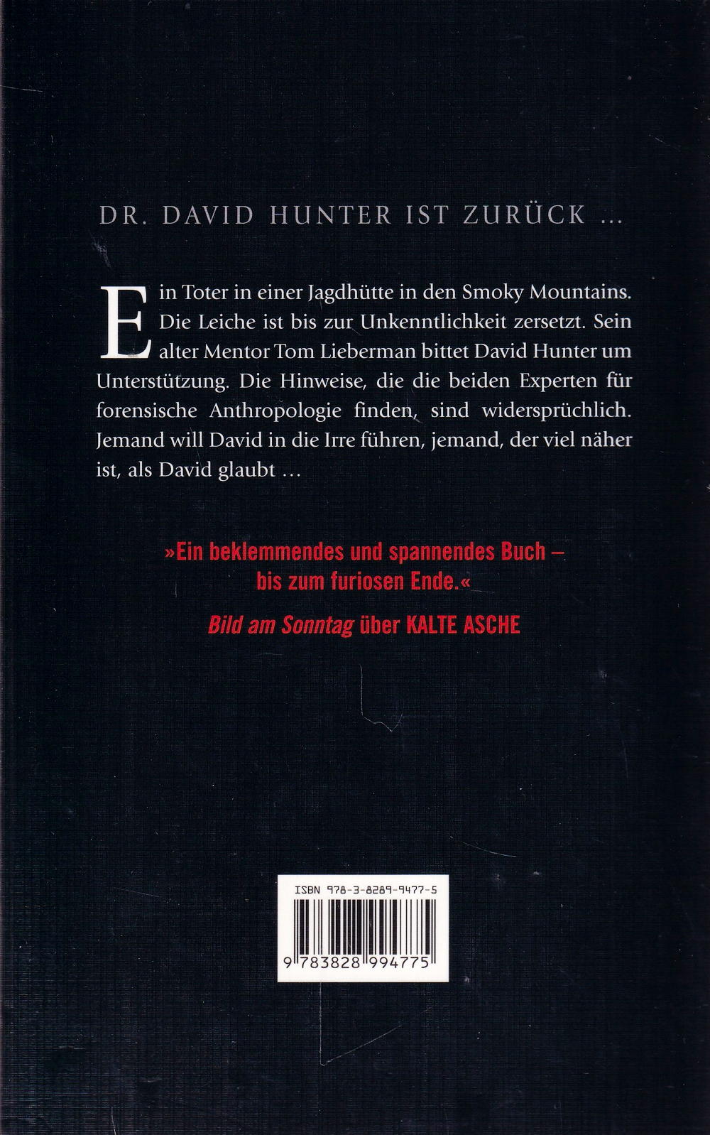 Die Leiche ist bis zur Unkenntlichkeit zersetzt. Sein alter Mentor Tom Lieberman bittet David Hunter um Unterstützung. Die Hinweise, die die beiden Experten für forensische Anthropologie finden, sind widersprüchlich.