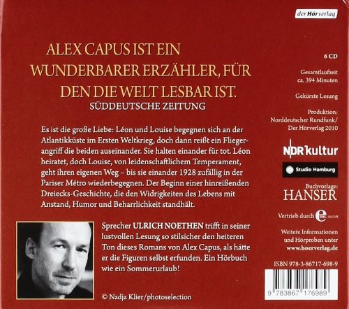 Alex Capus, geboren 1961 in Frankreich, studierte in Basel Geschichte, Philosophie und Ethnologie und lebt heute in Olten, Schweiz. Mit seinen Romanen Eine Frage der Zeit und Léon und Louise gelangen ihm durchschlagende Publikumserfolge. Zuletzt erschienen Der Fälscher, die Spionin und der Bombenbauer (2013) sowie Mein Nachbar Urs. Geschichten aus der Kleinstadt (2014). Alex Capus verbindet sorgfältig recherchierte Fakten mit fiktiven Erzählebenen, in denen er die persönlichen Schicksale seiner Protagonisten einfühlsam beschreibt. Für seine schriftstellerische Arbeit erhielt er bereits zahlreiche Preise. Ulrich Noethen, 1959 in München geboren, Absolvent der Hochschule für Musik und Darstellende Kunst in Stuttgart, begann seine Schauspielkarriere 1985 am Freiburger Theater. Nach zwei Jahren im dortigen Ensemble arbeitete er unter anderem am Schauspiel Köln, an der Staatlichen Schauspielbühne Berlin und am Staatstheater Stuttgart. Anfang der 90er Jahre wechselte er zum Fernsehen und spielte u. a. in Tatort und der Serie Die Partner. Der grosse Durchbruch gelang ihm 1997 mit Joseph Vilsmaiers Comedian Harmonists. Seitdem war er in Kinofilmen wie Gripsholm (2000), Der Untergang (2004), Ein fliehendes Pferd (2007), Henri IV (2009) oder Oh Boy (2012) sowie in unzähligen TV-Produktionen zu sehen. Er wurde mit dem Goldenen Löwen, der Goldenen Kamera, dem Bayerischen Filmpreis, dem Bundesfilmpreis und dem Preis der deutschen Filmkritik ausgezeichnet. Für den Hörverlag las Ulrich Noethen u. a. Demian und Narziss und Goldmund von Hermann Hesse, Léon und Louise und Der Fälscher, die Spionin und der Bombenbauer von Alex Capus sowie in Ulysses von James Joyce. Ausserdem wirkte er in zahlreichen Hörspielen mit, z. B. in Doktor Faustus von Thomas Mann und Wolfgang Koeppens Trilogie Tauben im Gras / Das Treibhaus / Der Tod in Rom mit.