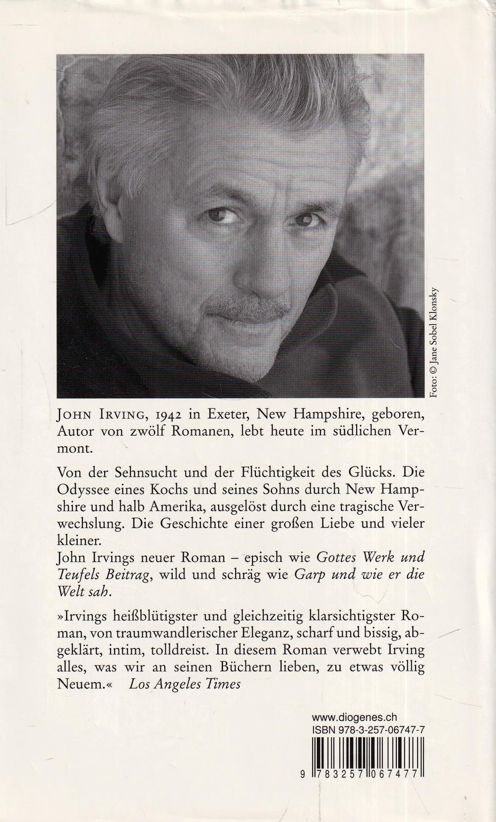 John (Winslow) Irving, geboren am 2. März 1942 in Exeter, im Staat New Hampshire, als ältestes von vier Kindern. John Irvings Vater war Lehrer und Spezialist für russische Geschichte und Literatur. Seine Kindheit verbrachte Irving in Neuengland. 1957 begann er mit dem Ringen; 19jährig wusste Irving, was er werden wollte: Ringer und Romancier. Studium der englischen Literatur an den Universitäten von New Hampshire und Iowa, wo er später Gastdozent des Schriftsteller-Workshops war. Deutschkurs in Harvard. 1963-1964 Aufenthalt in Wien. 1964 Rückkehr in die Vereinigten Staaten. Arbeit als Lehrer an Schule und Universität bis 1979. Lebt heute in Toronto und im südlichen Vermont. 1992 wurde Irving in die National Wrestling Hall of Fame in Stillwater, Oklahoma, aufgenommen, 2000 erhielt er einen Oscar für die beste Drehbuchadaption für seinen von Lasse Hallström verfilmten Roman Gottes Werk und Teufels Beitrag.