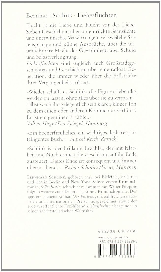 Bernhard Schlink, geb. 1944 in Bielefeld, aufgewachsen in Heidelberg. Jurastudium dort und in Berlin, danach wissenschaftlicher Assistent. Erste Professur für VerfR und VerwR in Bonn, dann in Frankfurt. 1988 Richter des VerfGH für das Land NRW. Nach der Wende 1989 in Berlin tätig. Heute Professor für öffentliches Recht und Rechtsphilosophie an der Humboldt-Universität in Berlin und Richter am LVerfGH in Münster. Zunächst Fachbuch-, dann Romanveröffentlichungen; Auszeichnungen.