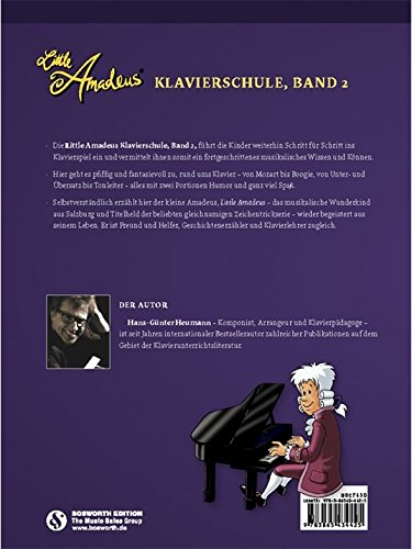 Endlich ist sie da, die Fortsetzung der Klavierschule mit dem kleinen Amadeus, der Kultfigur unseres Nachwuchses. Ebenso liebvoll gestaltet und pädagogisch durchdacht wie der erste Band präsentiert sich der zweite Teil der Little Amadeus Klavierschule im Hochformat. Band 2 führt die Kinder weiterhin Schritt für Schritt ins Klavierspiel ein und vermittelt ihnen somit ein fortgeschrittenes musikalisches Wissen und Können. Ab jetzt wird die geschlossene Fünffinger-Handlage verlassen. Fingerwechsel auf derselben Taste und Spreizen der Finger erweitern den Tonraum in der Melodie und Begleitung. Danach gibt es Spielstücke auf allen schwarzen Tasten innerhalb einer Oktave.Mit dem Unter- und Übersatz wird das Tonleiterspiel in Dur und Moll begonnen und ein Tonraum von vier Oktaven durchschritten, von C bis c³.