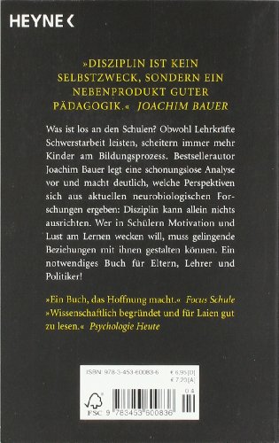 Obwohl Lehrkräfte Schwerstarbeit leisten, scheitern immer mehr Kinder am Bildungsprozess. Bestsellerautor Joachim Bauer macht deutlich, welche Perspektiven sich aus aktuellen neurobiologischen Forschungen ergeben: Disziplin kann allein nichts ausrichten. Wer in Schülern Motivation und Lust am Lernen wecken will, muss gelingende Beziehungen mit ihnen gestalten. Ein notwendiges Buch für Eltern, Lehrer und Politiker!