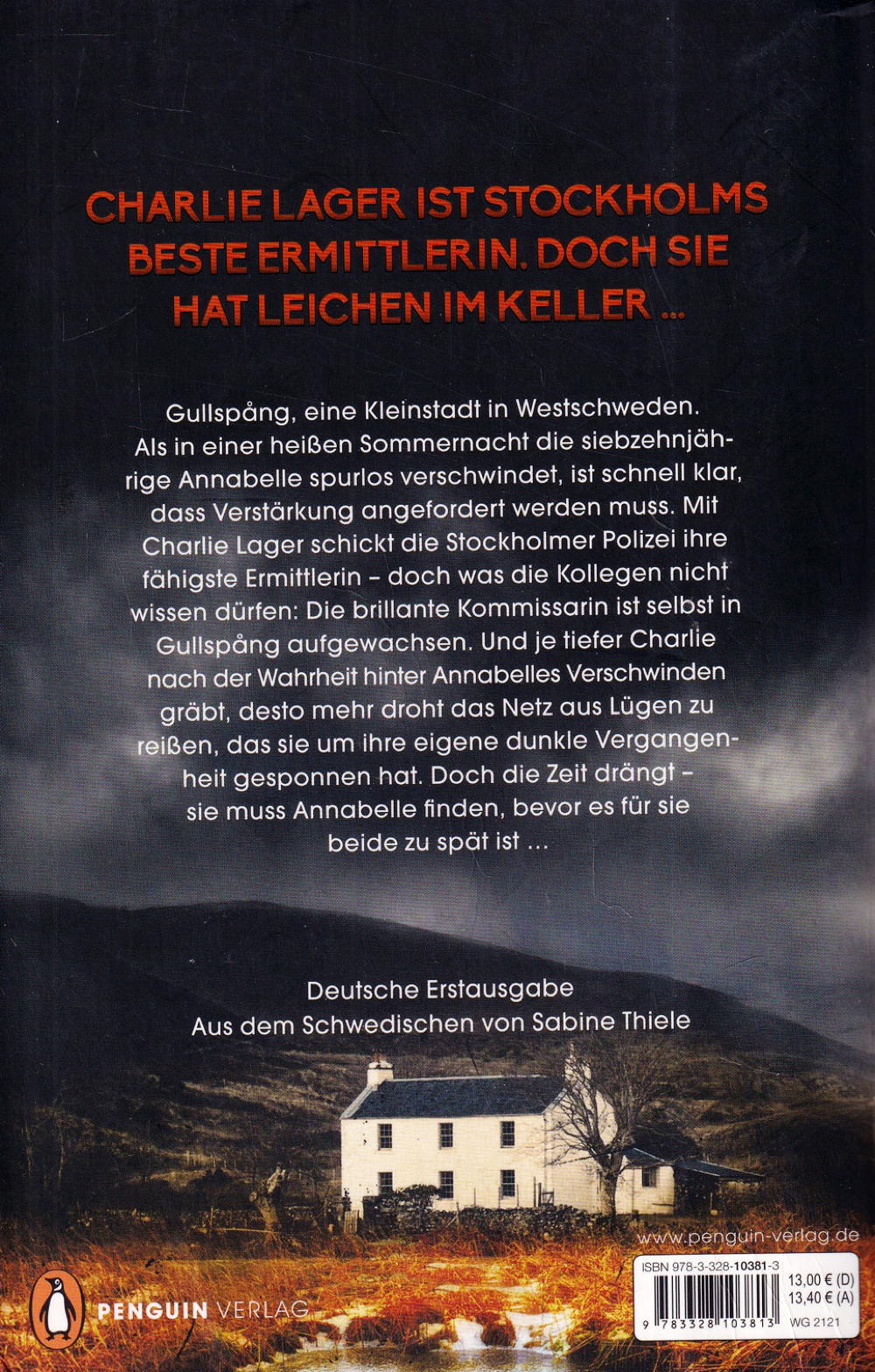 Gullspång, eine Kleinstadt in Westschweden. Als in einer heissen Sommernacht die siebzehnjährige Annabelle spurlos verschwindet, ist schnell klar, dass Verstärkung angefordert werden muss. Mit Charlie Lager schickt die Stockholmer Polizei ihre fähigste Ermittlerin - doch was die Kollegen nicht wissen dürfen: Die brillante Kommissarin ist selbst in Gullspång aufgewachsen. Je tiefer Charlie nach der Wahrheit hinter Annabelles Verschwinden gräbt, desto mehr droht das Netz aus Lügen zu reissen, das sie um ihre eigene, dunkle Vergangenheit gesponnen hat. Doch die Zeit drängt - sie muss Annabelle finden, bevor es für sie beide zu spät ist...
